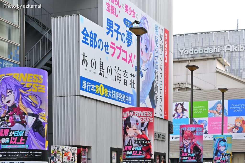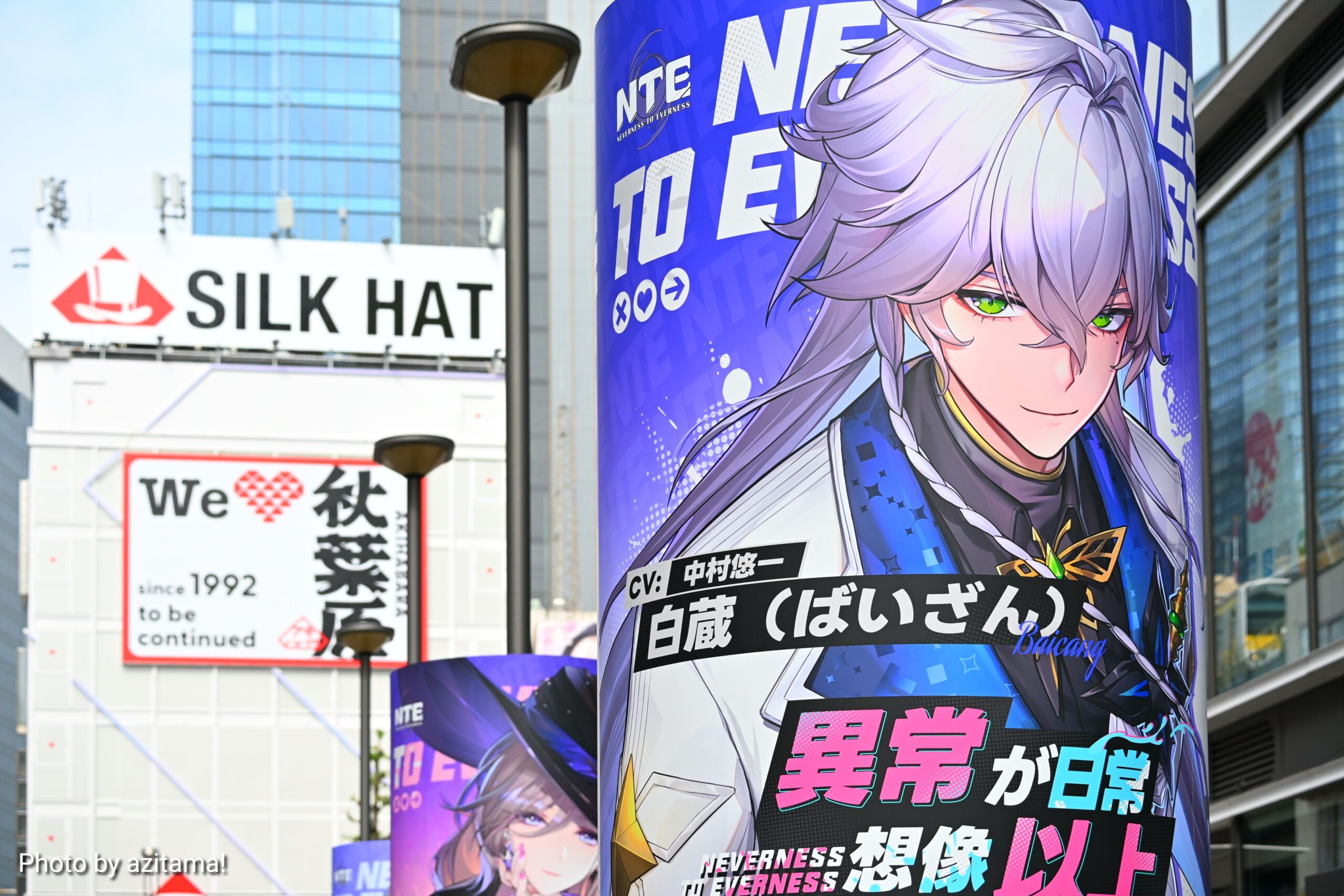 秋葉原駅前、アキバWi-FiシリンダーA・Bの広告が更新。今回の広告はゲーム『NTE: Neverness to Everness』だった。