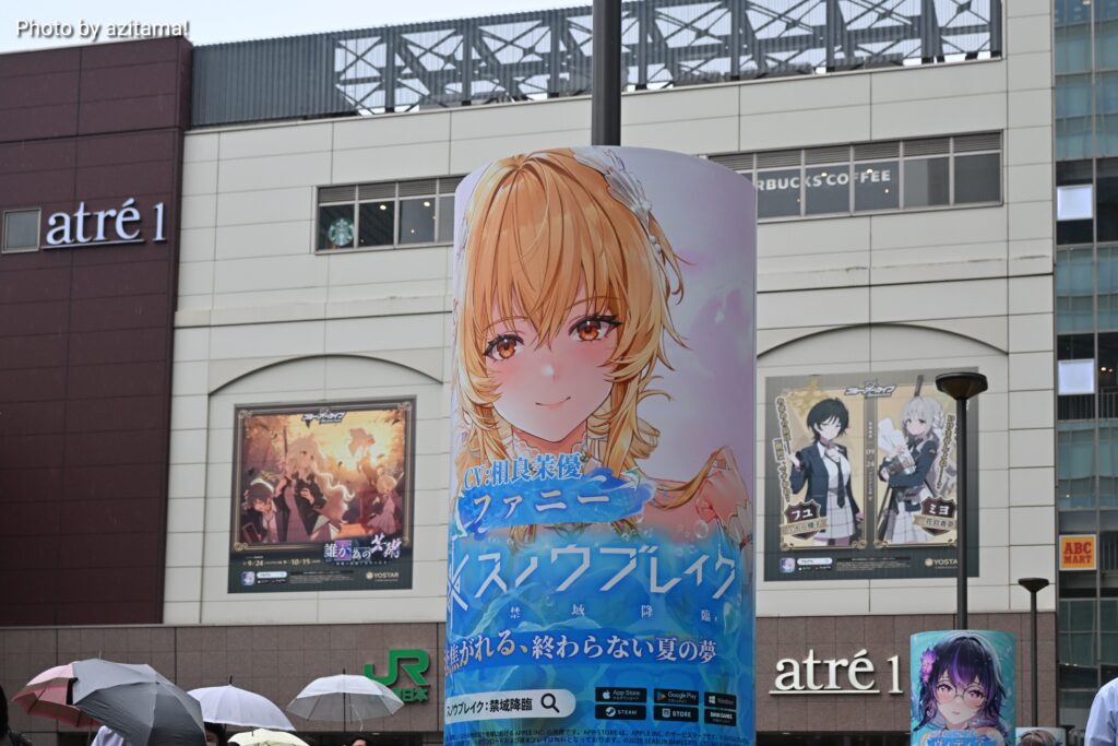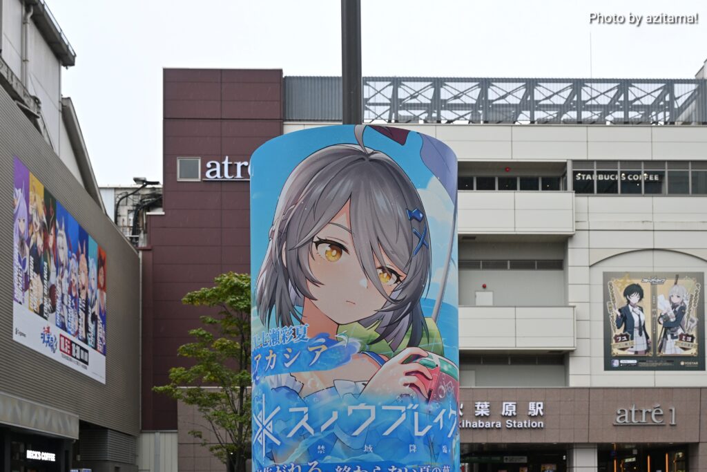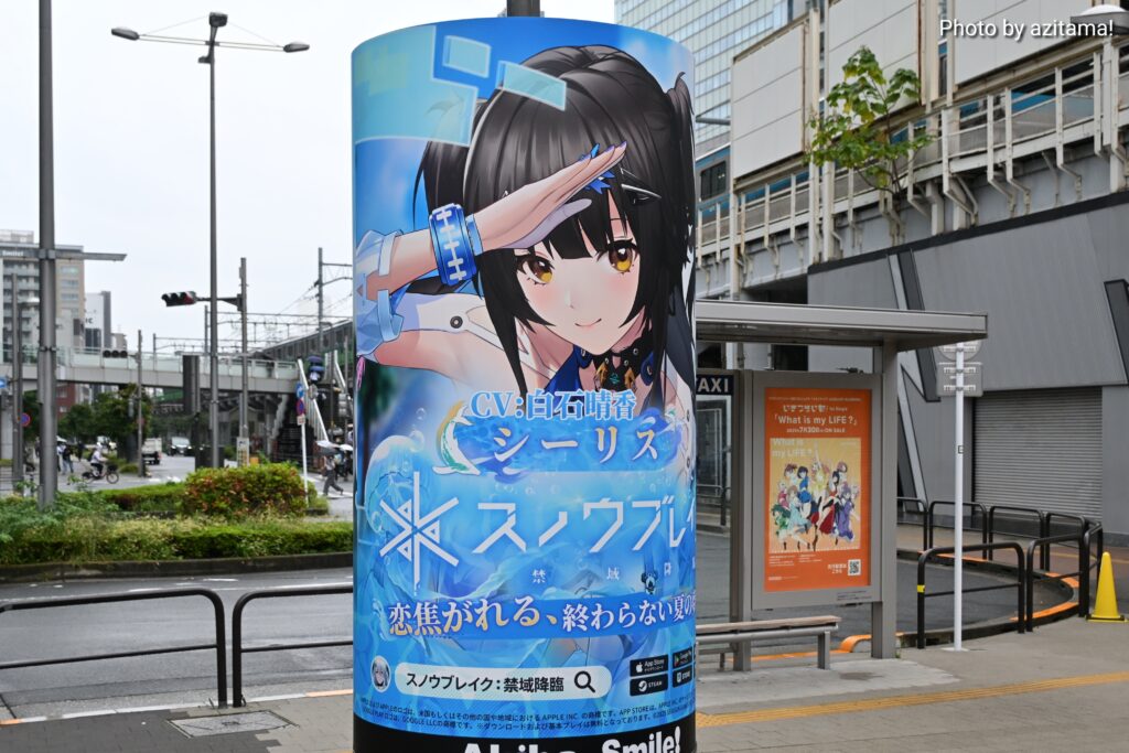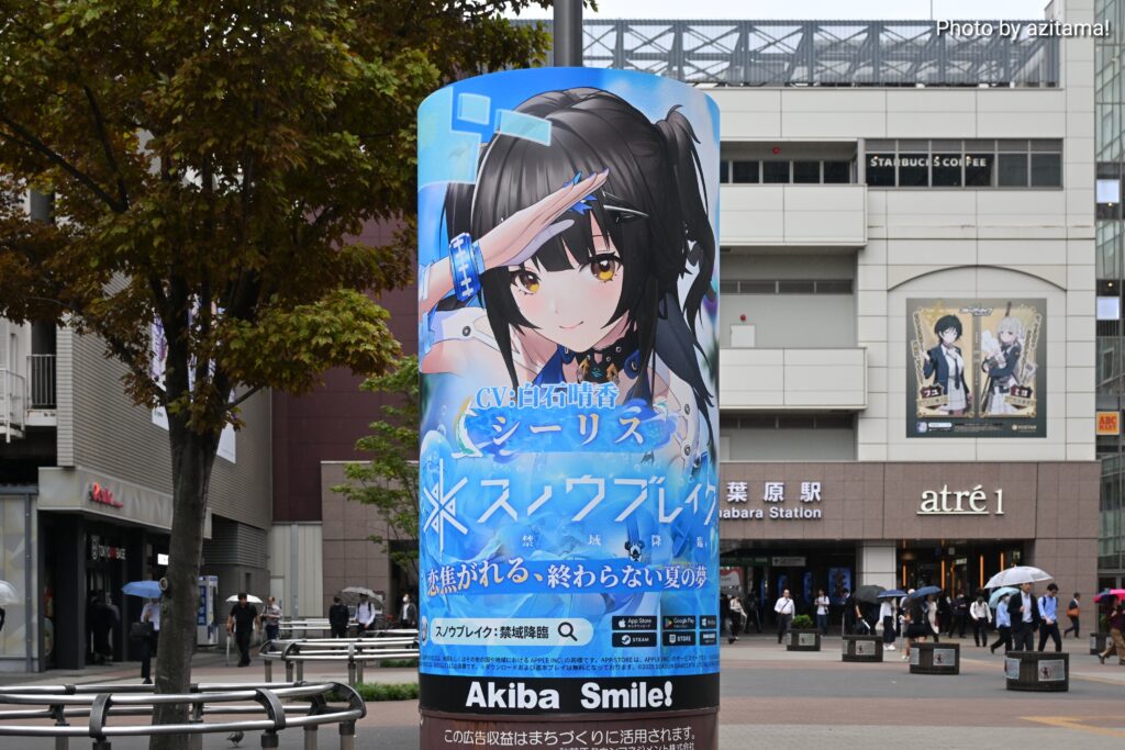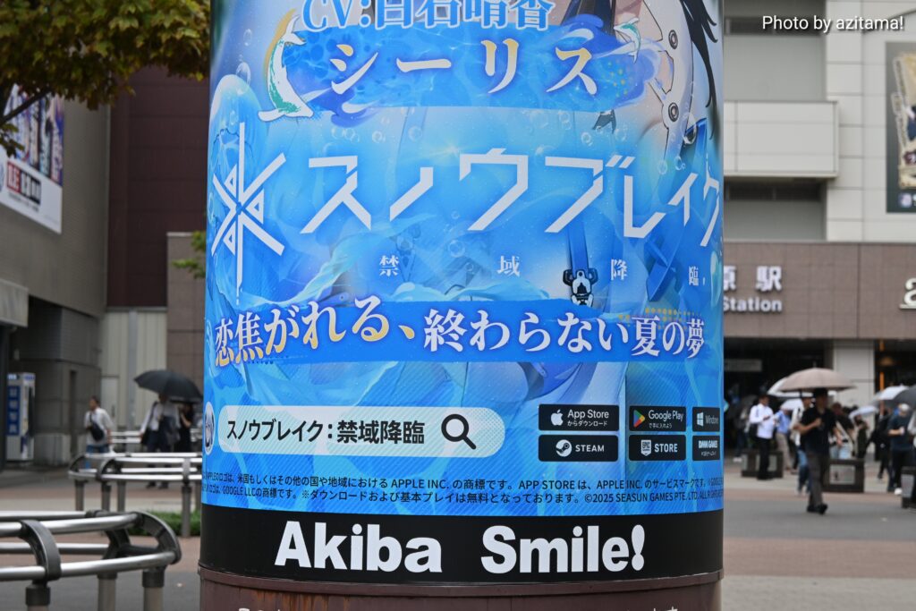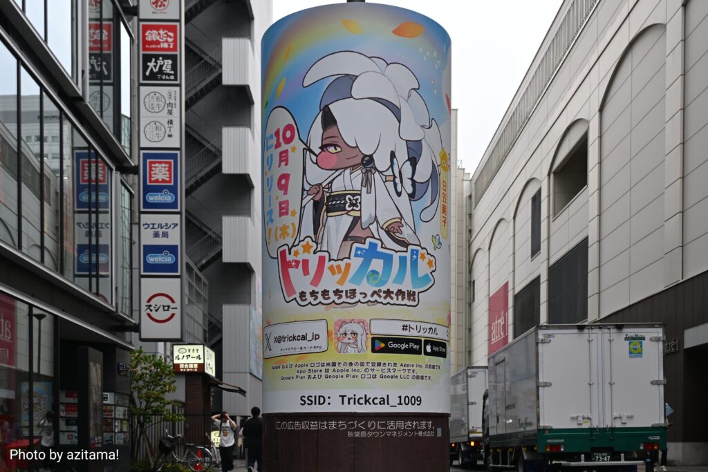 秋葉原駅前の円柱広告、アキバWi-FiシリンダーA・Bに久しぶりに広告が掲載。今回はゲーム『トリッカル・もちもちほっぺ大作戦』『スノウブレイク:禁域降臨』の広告だった。