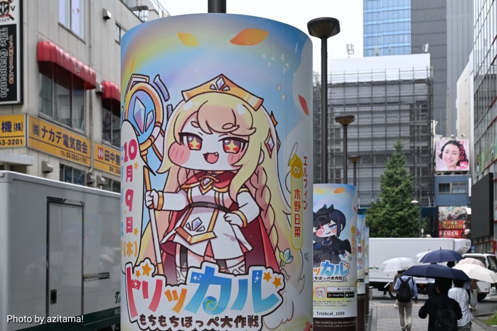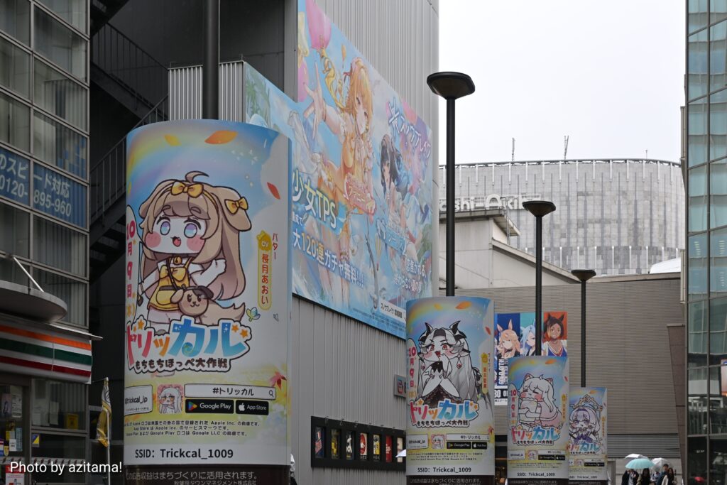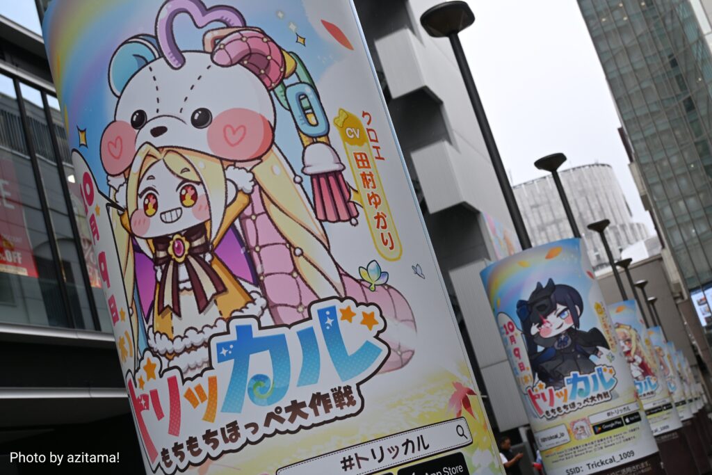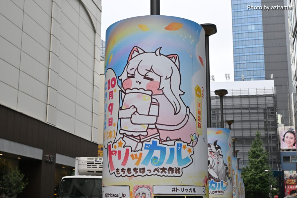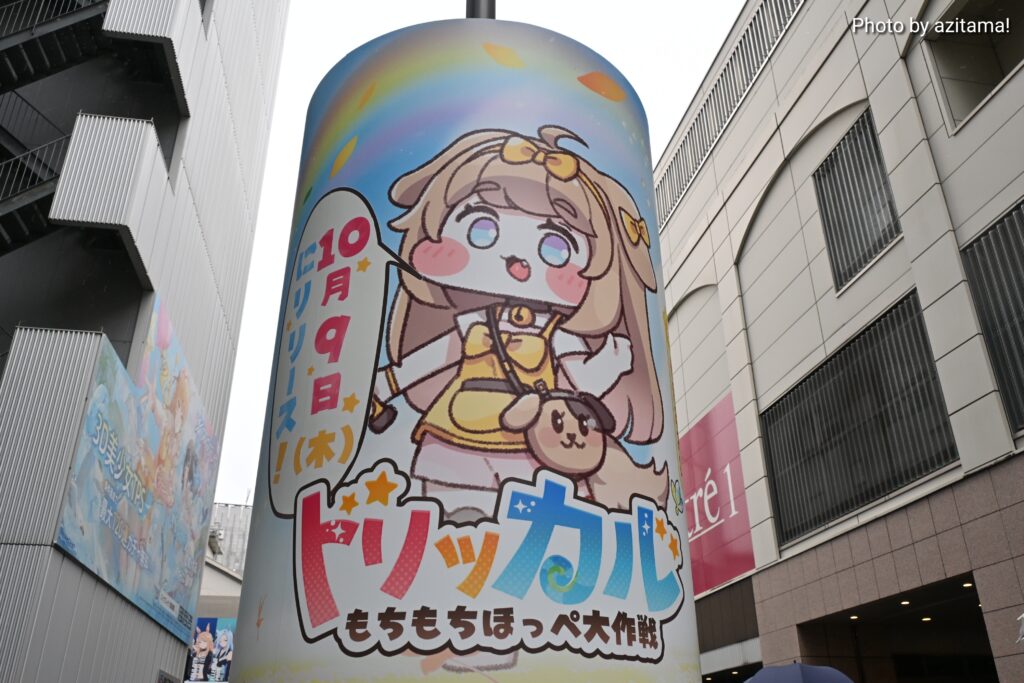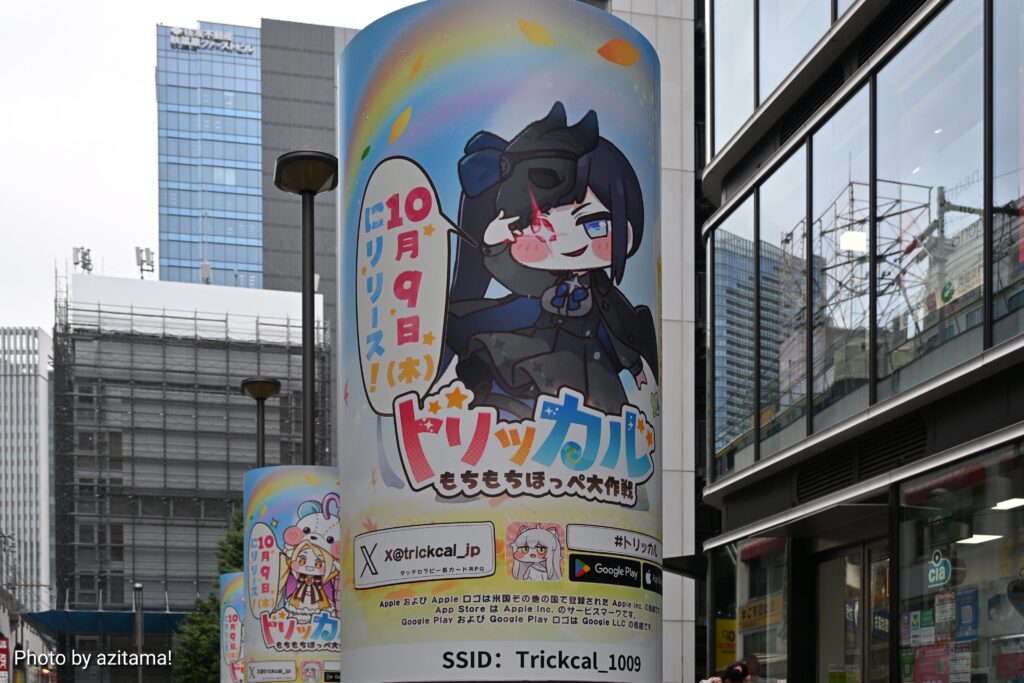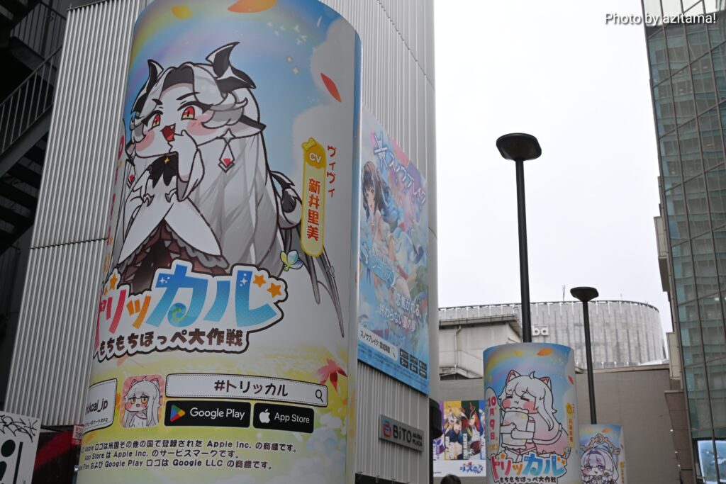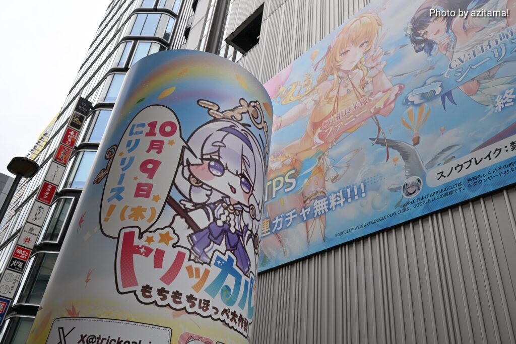 今回はゲーム『トリッカル・もちもちほっぺ大作戦』で、10月9日(木)にリリース予定のゲーム作品。リリース直前に秋葉原駅前にて広告が掲載された。