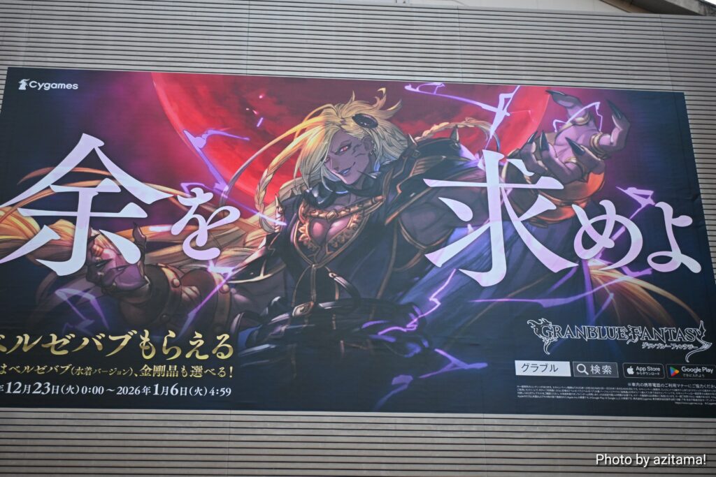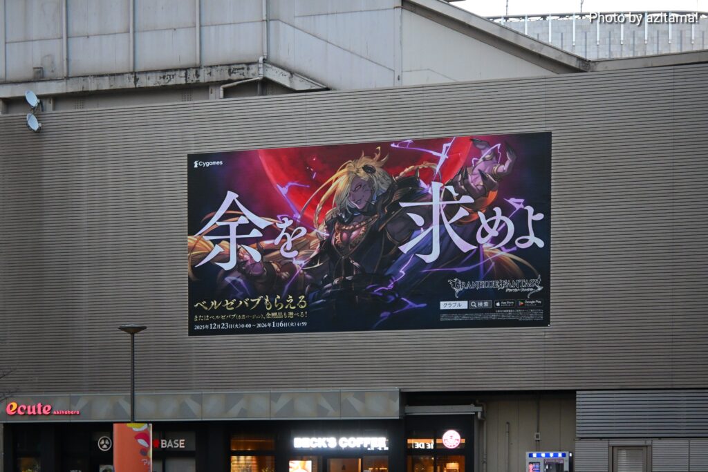 JR秋葉原駅 電気街北口の秋葉原電気街口ボードの広告が更新。『グランブルーファンタジー』ベルゼバブもらえる 広告が掲載された。
