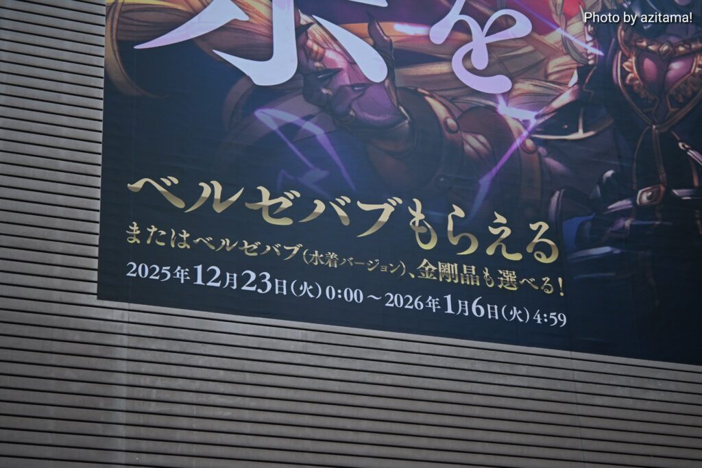 今回は『グラブル』ベルゼバブもらえる またはベルゼバブ(水着バージョン)、金剛晶も選べる!広告で、広告ではベルゼバブが単独で登場。キャッチコピーは「余を求めよ」。この場所での『グラブル』広告は今年の11月上旬、『グラブル』グランブルーファンタジー×エヴァンゲリオン 以来。