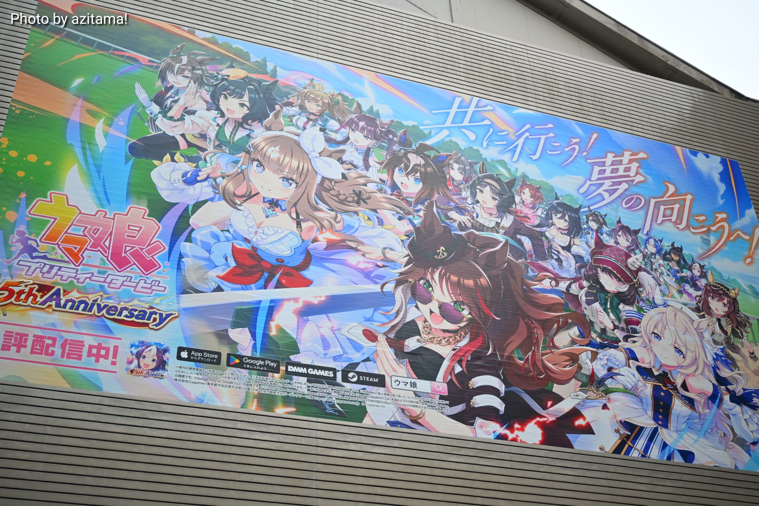 今回はゲーム『ウマ娘 プリティーダービー』5th Anniversaryの広告で、昨年の『ウマ娘』広告と比べて、より多くのウマ娘たちが登場した。キャッチコピーは「共に行こう!夢の向こうへ!」。