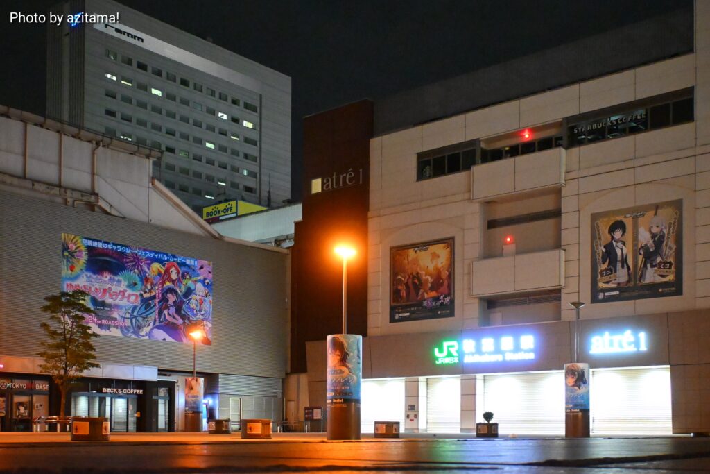 JR秋葉原駅の電気街北口、西側交通広場と開けた場所に広告が掲載されている。