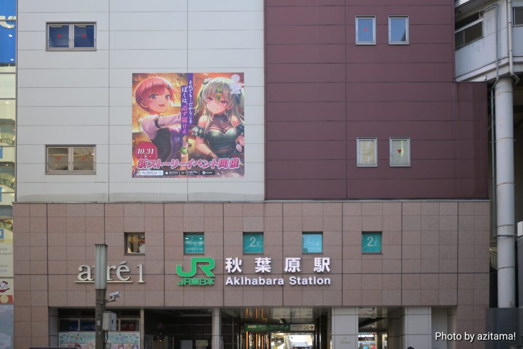 同広告はJR秋葉原駅のみの広告掲載。ムーランAKIBA中央通りホビー館の『ヘブバン』は以前の広告から変更されていない。(11月1日現在)