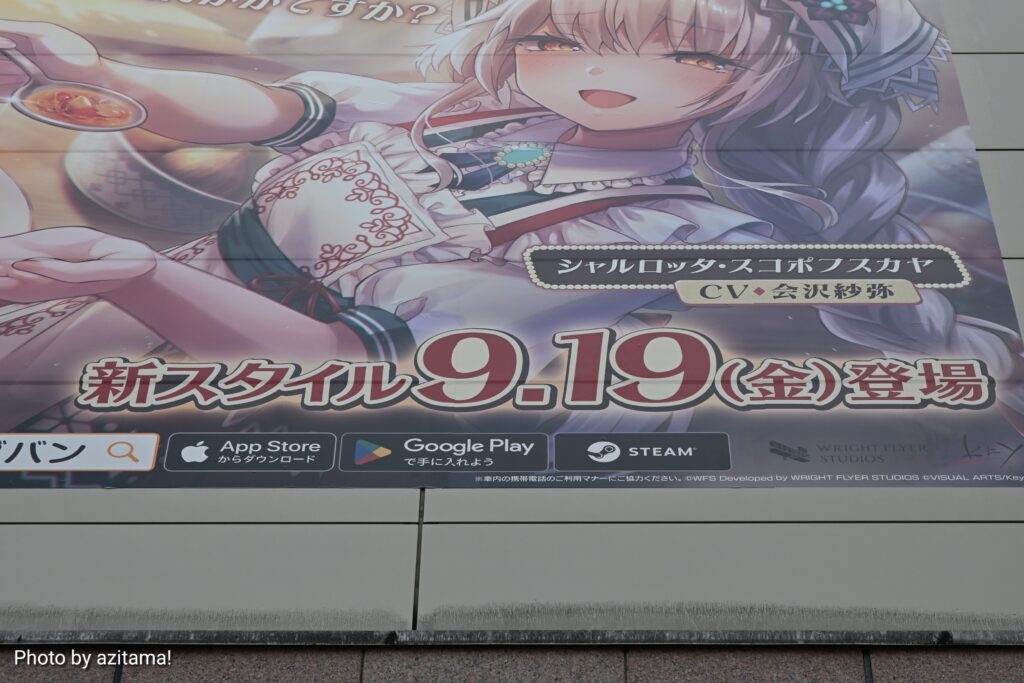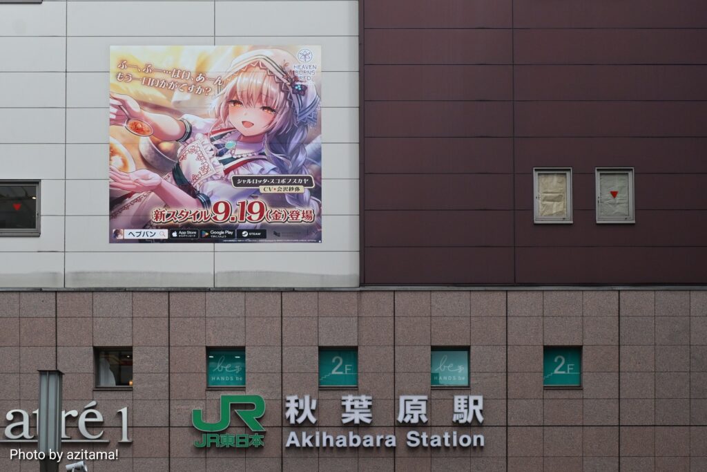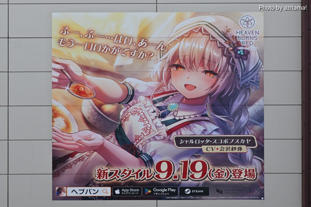 JR秋葉原駅 電気街南口の広告枠、秋葉原電気街口サウスシートに掲載されている『ヘブンバーンズレッド』広告が久しぶりに更新されて、シャルロッタ・スコポフスカヤ(CV:会沢紗弥)の広告が掲載されている。