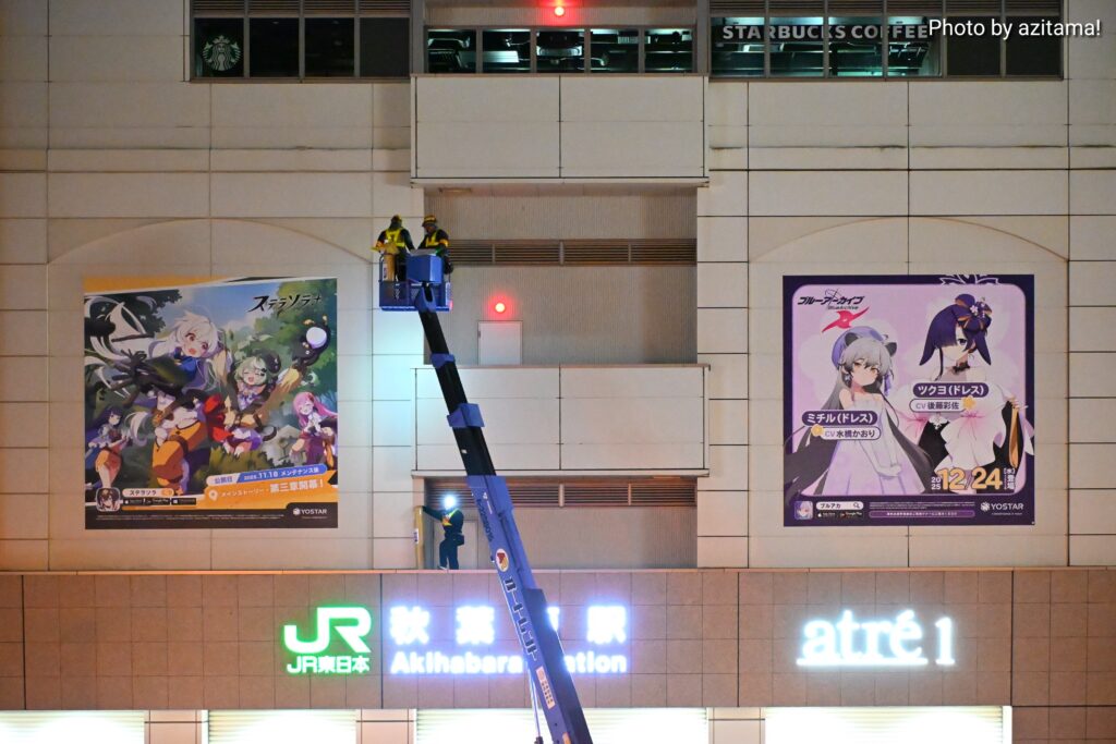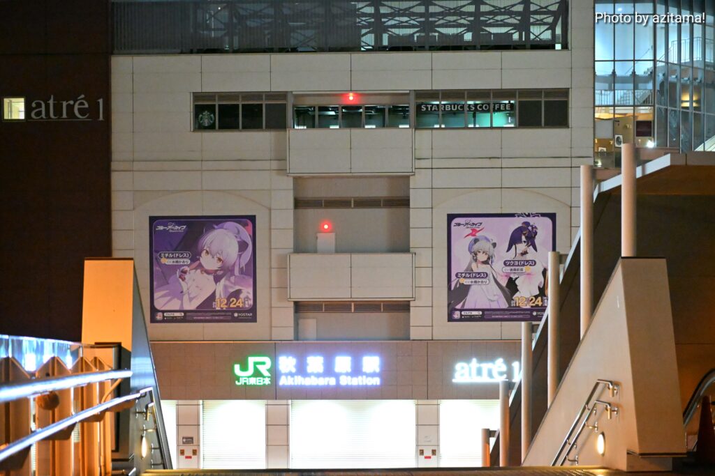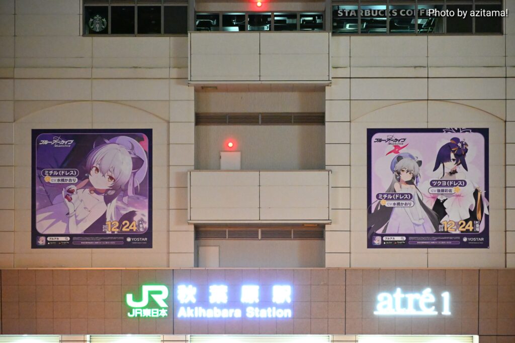 JR秋葉原駅 電気街北口の広告が『ステラソラ』から更新。『ブルアカ』ミチル(ドレス)ツクヨ(ドレス)広告が掲載された。