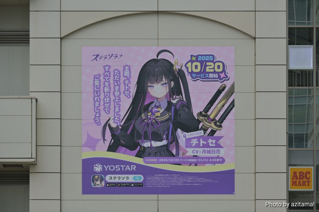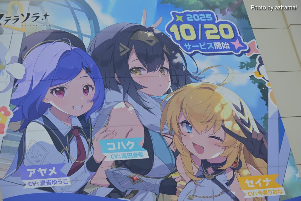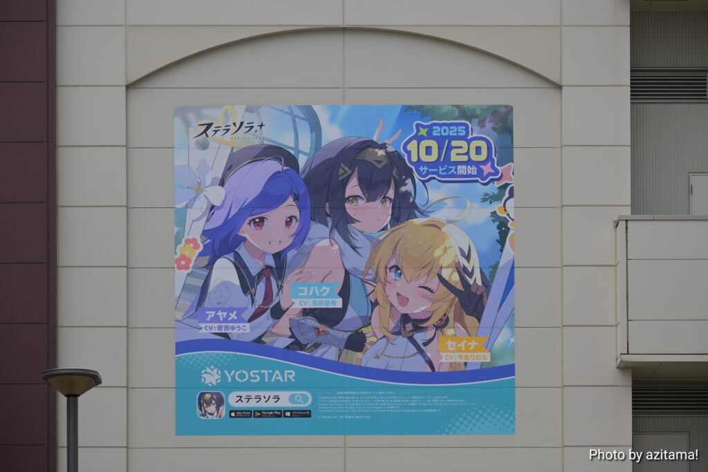 今回の広告はYostar最新作『ステラソラ』の広告で、同作品は2025年10月20日にサービス開始が予定されている。広告では同作品の主要キャラクター、アヤメ、コハク、セイナ、そしてチトセが登場。「2025/10/20 サービス開始」と、サービス開始日の告知もされていた。