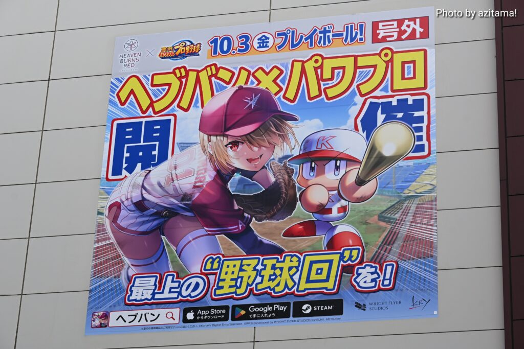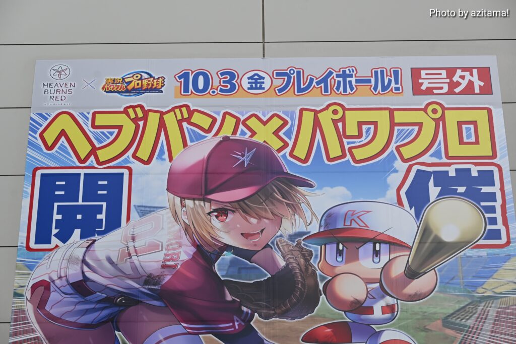 今回はヘブンバーンズレッド × 実況パワフルプロ野球で、10月3日よりコラボイベントが開催されることを告知した広告。広告では「ヘブバンでパワプロコラボ開催!」「10.3(金)プレイボール!」などの文字もあった。