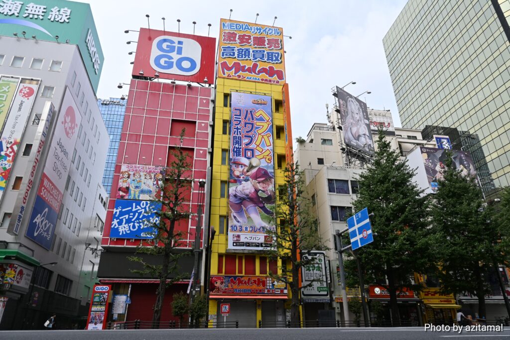 JR秋葉原駅 電気街南口の秋葉原電気街口サウスシートと、ムーランAKIBA中央通りホビー館の『ヘブバン』広告が更新されている。