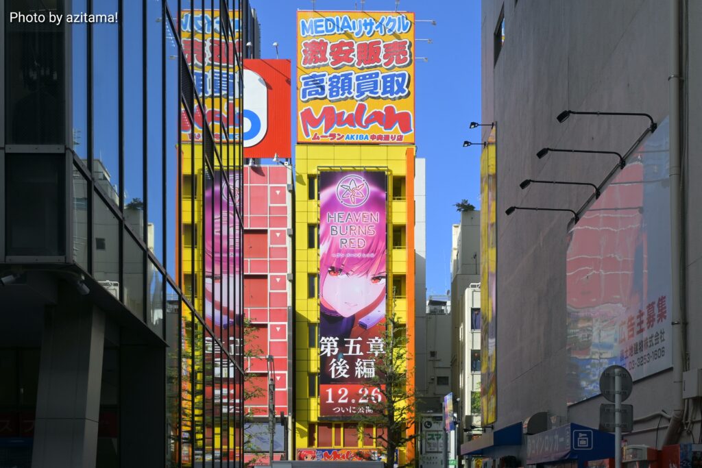 JR秋葉原駅 電気街南口の秋葉原電気街口サウスシートと、ムーランAKIBA中央通りホビー館の『ヘブンバーンズレッド』広告が同時に更新された。