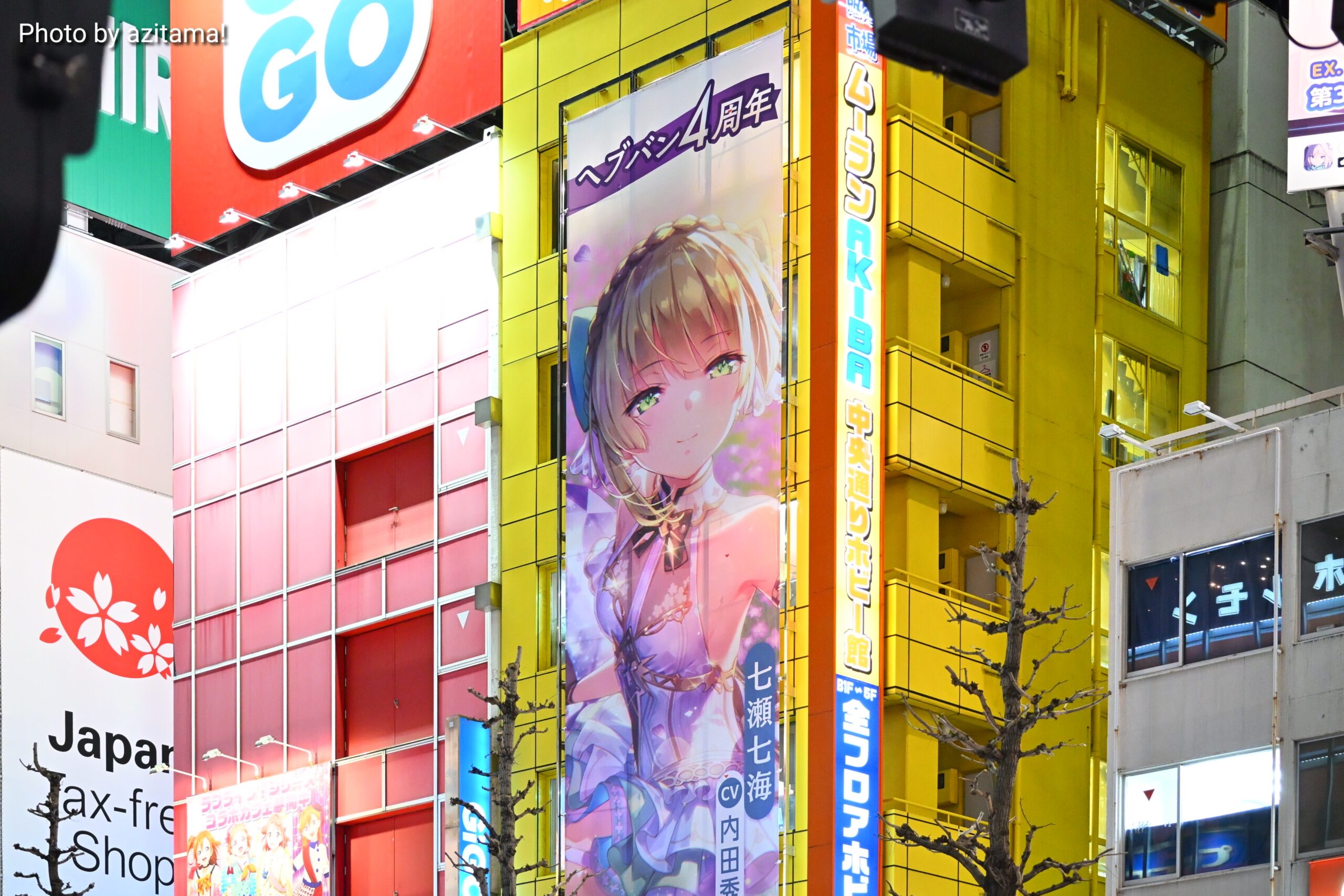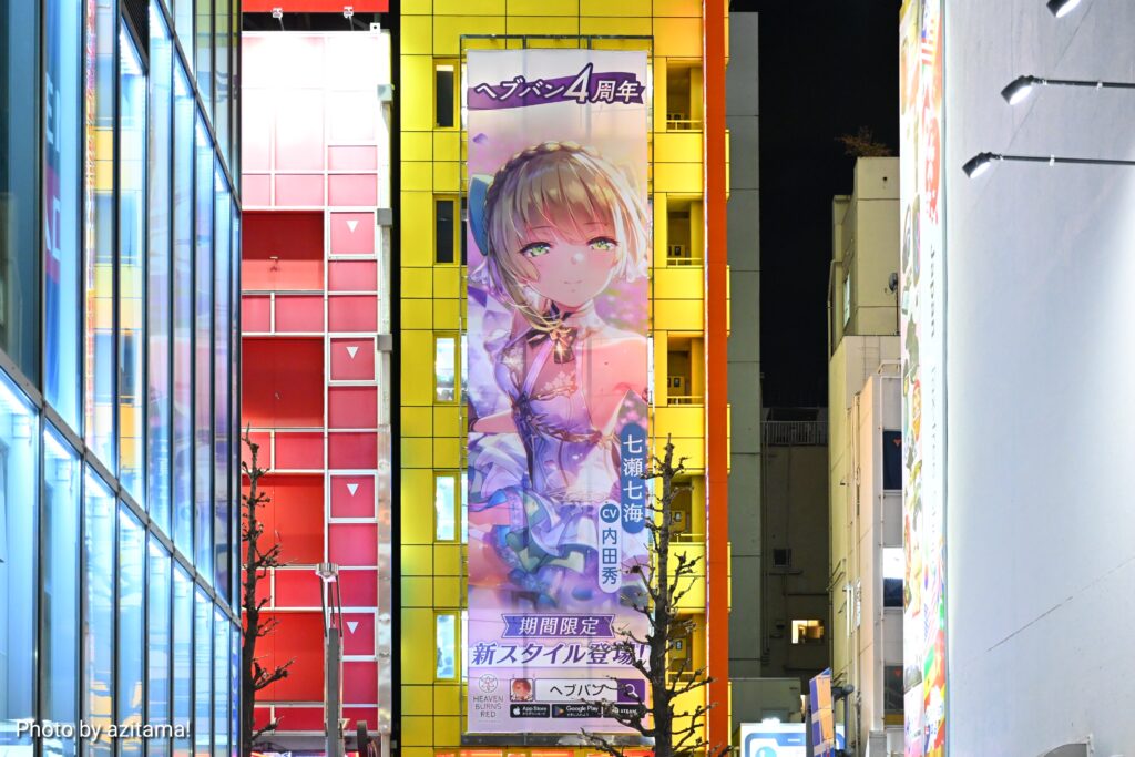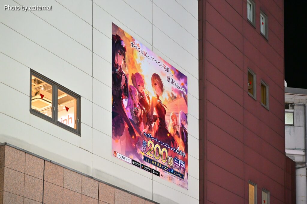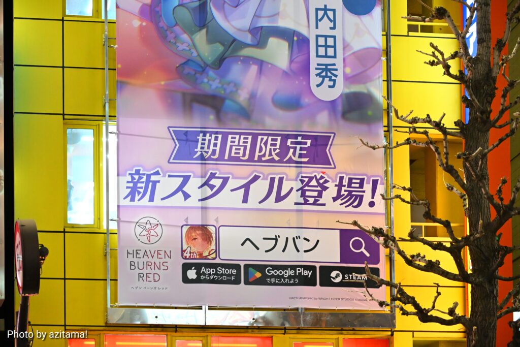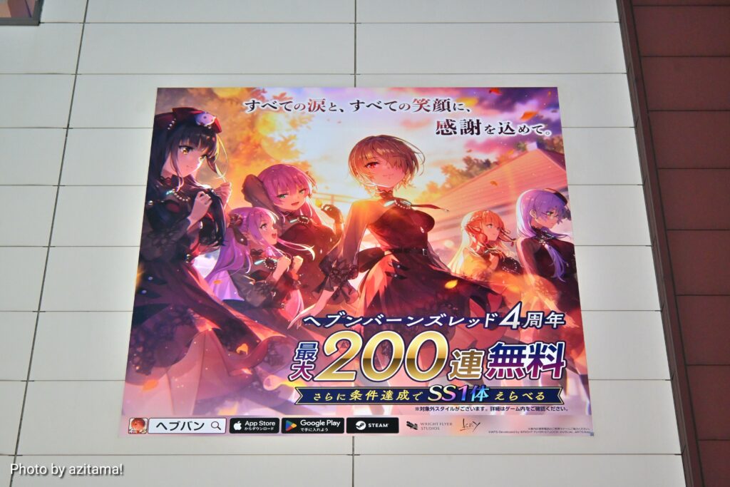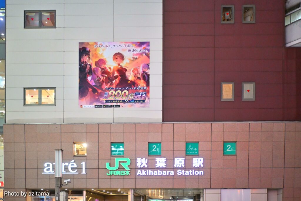 JR秋葉原駅 電気街南口と/ーランAKIBA中央通りホビー館にて掲載されている『ヘブンバーンズレッド』広告が更新されて、同作品の4周年を記念した仕様になっている。