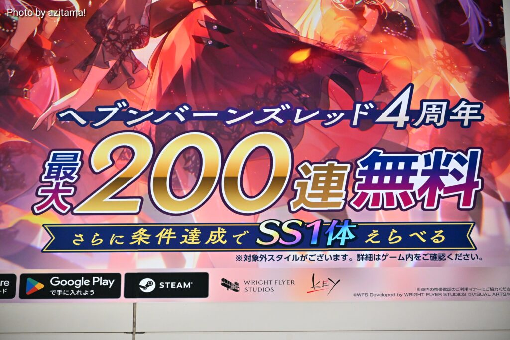 今回は『ヘブバン』4周年を記念した広告で、「最大200連無料」などの告知や、「すべての涙と、すべての笑顔に、感謝を込めて。」などの文字もあった。