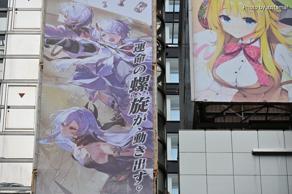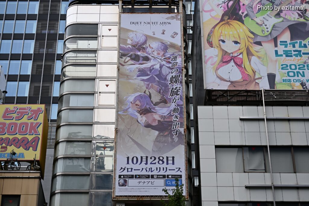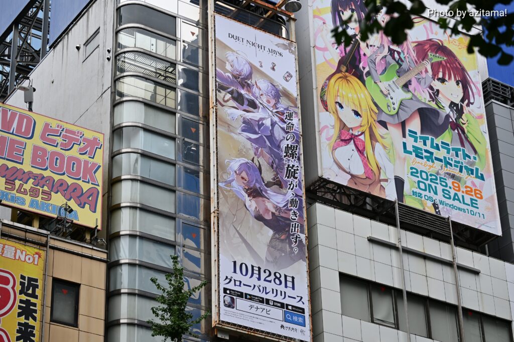 秋葉原中央通り、アニメイト秋葉原ANNEXにてゲーム『デュエットナイトアビス』の広告が掲載されている。