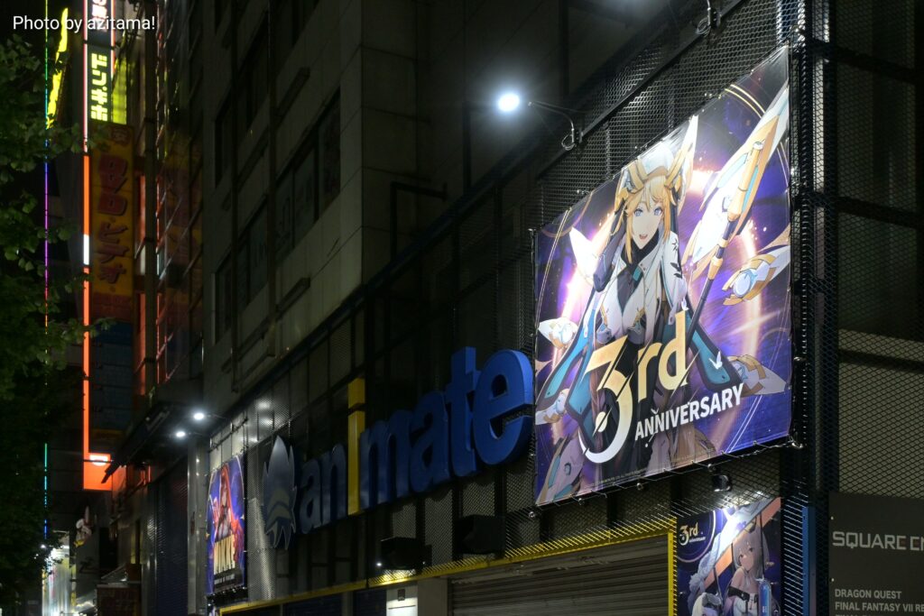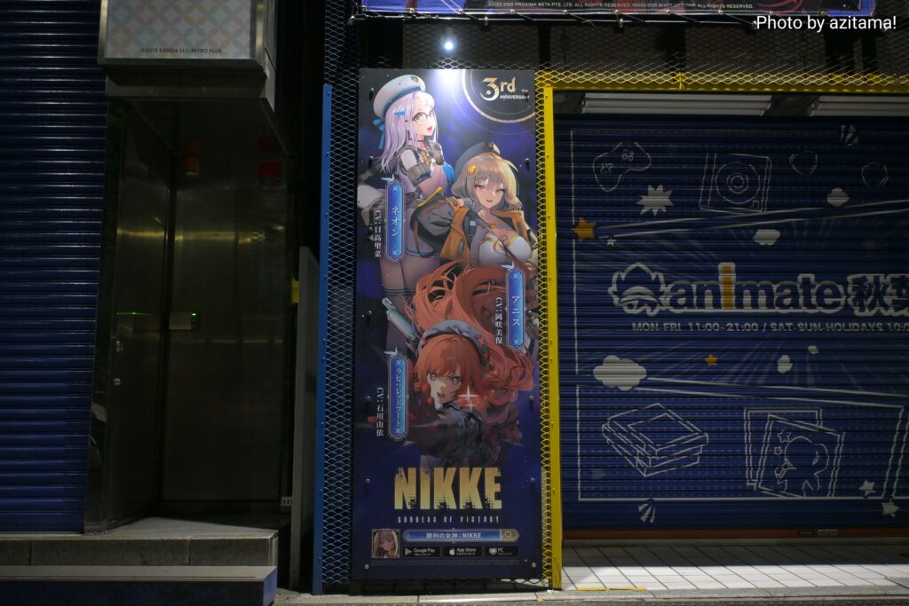 秋葉原中央通り、アニメイト秋葉原の『勝利の女神:NIKKE』広告が久しぶりに更新されて、同作品のリリース3周年を記念した広告が掲載。