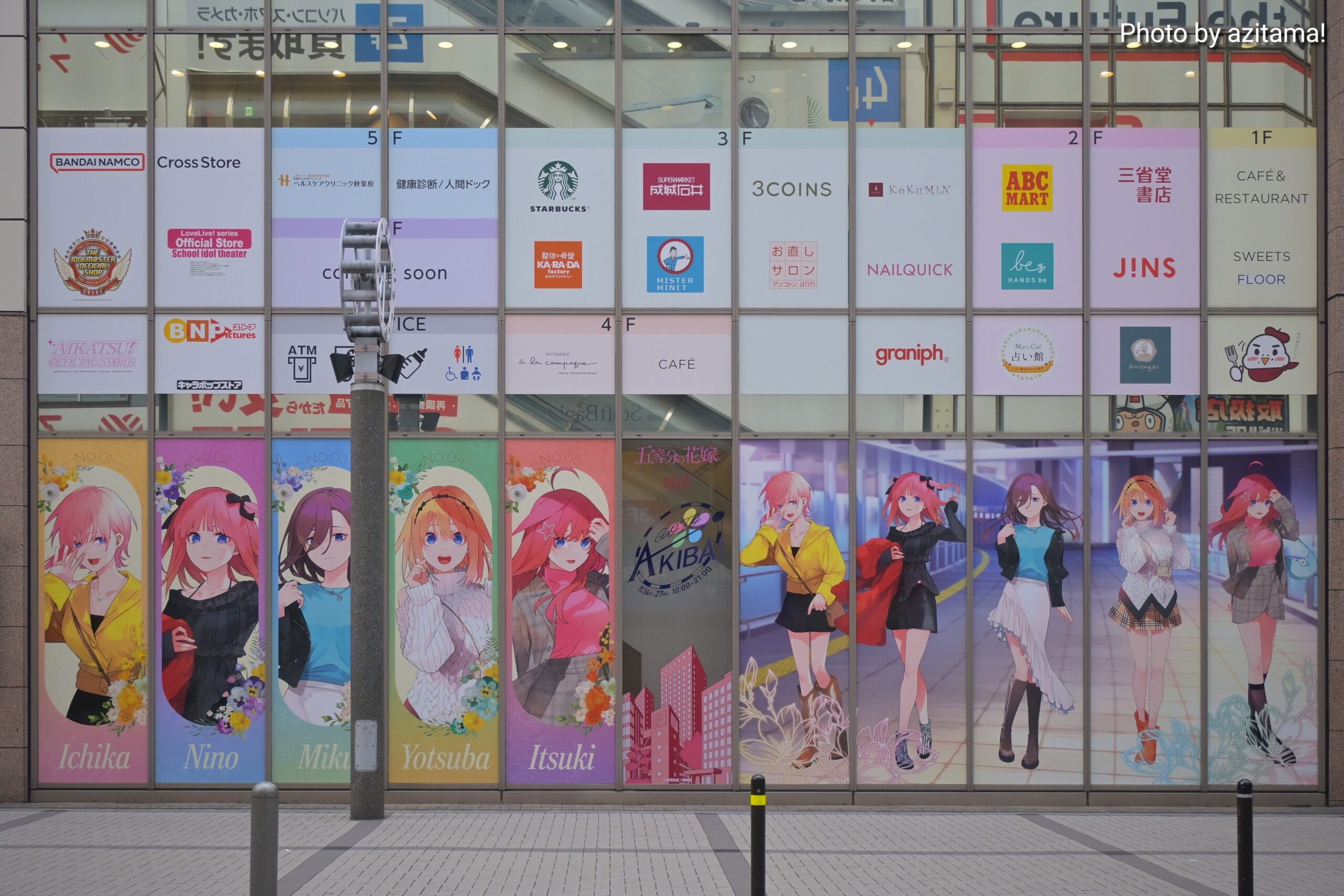 JR秋葉原駅の駅ビル・アトレ秋葉原1の館内外ラッピングが更新されて、『五等分の花嫁』GOTO AKIBA!×アトレ秋葉原の館外ラッピングが掲載されている。