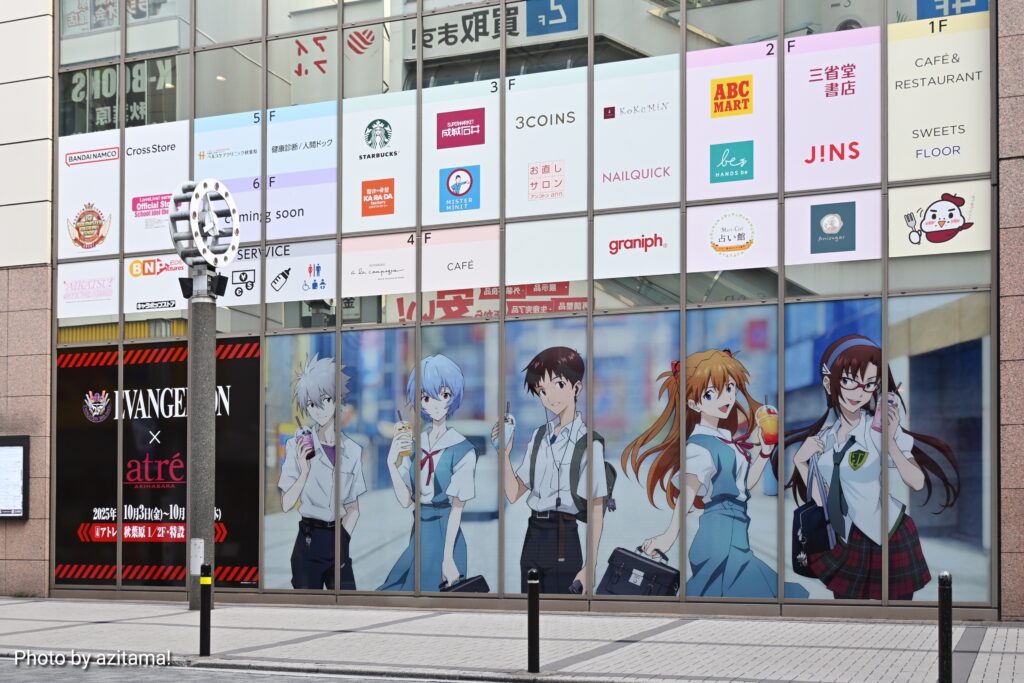 今回は『エヴァンゲリオン』シリーズ30周年を記念したEVANGELION(エヴァンゲリオン)×アトレ秋葉原のコラボラッピングで、式波・アスカ・ラングレーなどをはじめとした主要キャラクターがアトレ秋葉原に登場。今回は北側(電気街北口)を除く全ての箇所にラッピングが掲載。