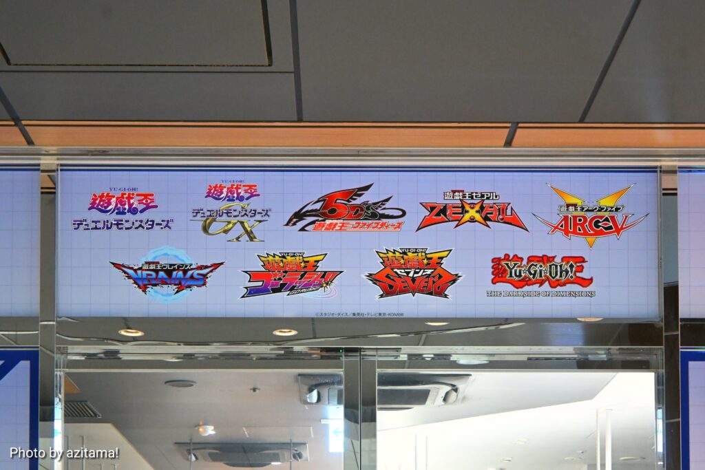 出入口上部では『遊☆戯☆王』各シリーズのタイトルロゴ。