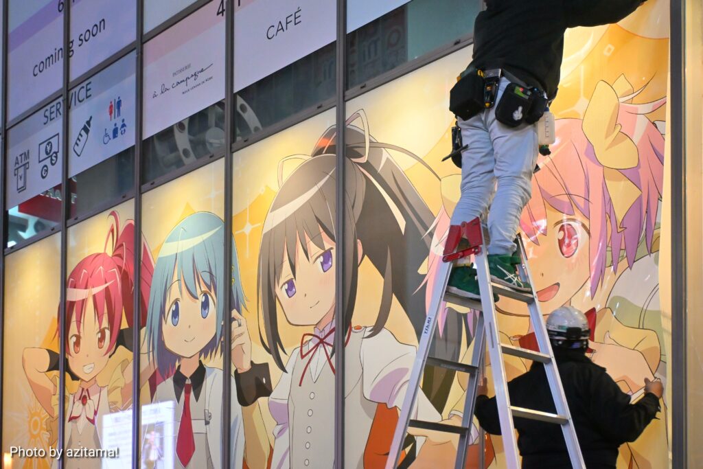 ラッピング更新は去年の12月下旬以来で、以前はラブライブ!シリーズ×アトレ秋葉原(2025年12月)の館外ラッピングが掲載されていたが、今回『魔法少女まどか☆マギカ』へ変更。