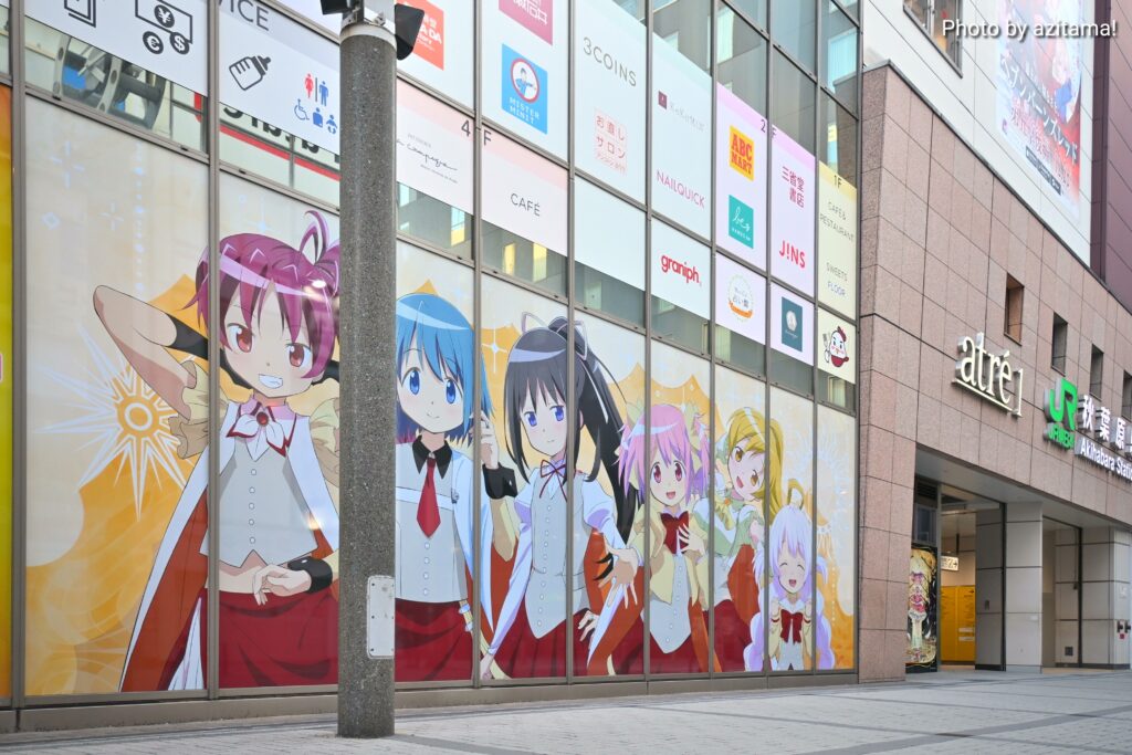 JR秋葉原駅の駅ビル・アトレ秋葉原1の館内外ラッピングが更新されて、アトレ秋葉原 × 魔法少女まどか☆マギカの館外ラッピングが掲載されている。
