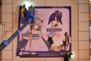 今回はゲーム『アズールレーン』ライオン・大鳳の広告で、吉野家/COMICZINにはライオン(CV 大西沙織)が、大黒屋には大鳳(CV 悠木碧)の広告が掲載。中央通りでのアズレン広告は今年の3月、サンタフェ・モガドール・ヴォロシーロフの広告以来となっている。