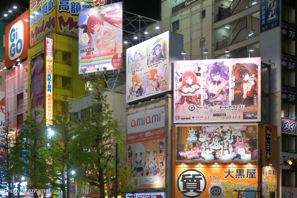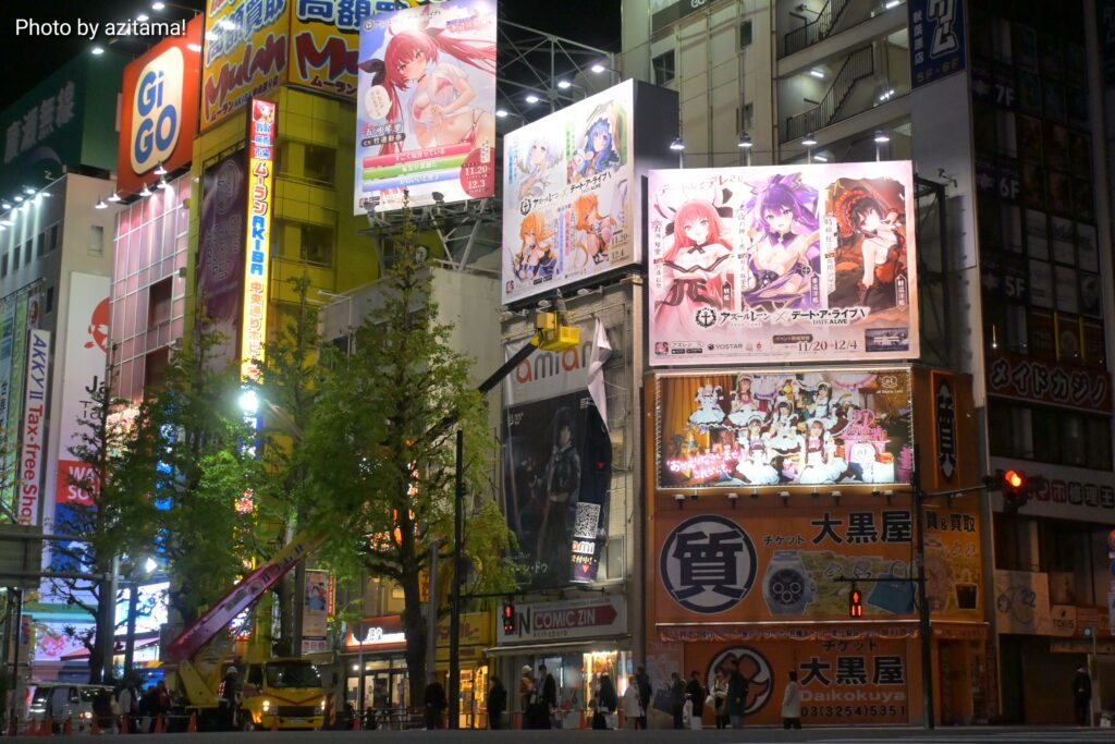 秋葉原中央通り/神田明神通りの交差点付近に掲載されている広告。