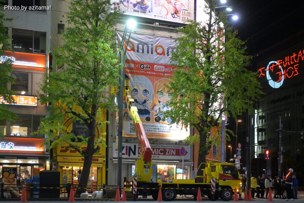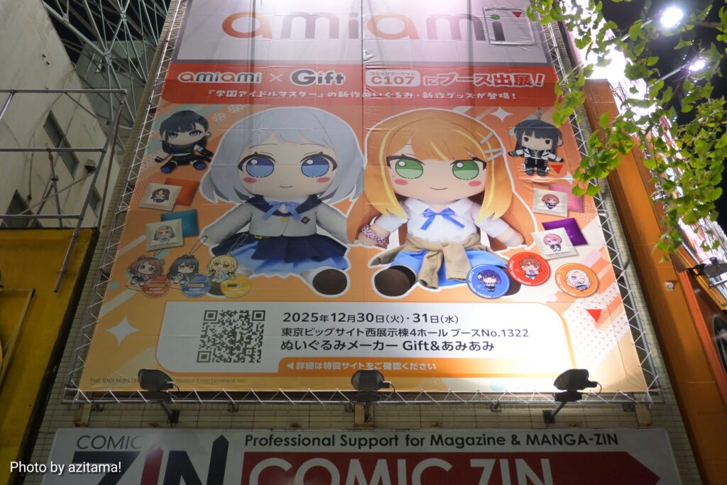 COMICZIN秋葉原店の壁面広告が11月末に更新されて、『あみあみ×Gift』C107にブース出展!の広告が掲載されている。