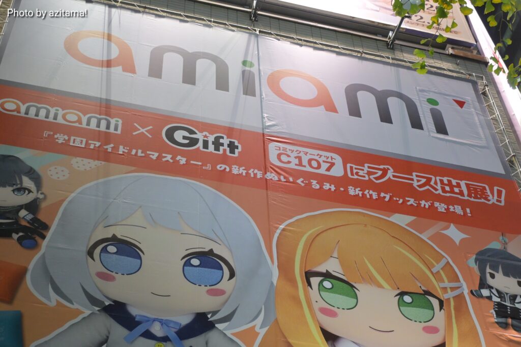 今回は『あみあみ×Gift』C107にブース出展!の広告で、「『学園アイドルマスター』の新作ぬいぐるみ・新作グッズが登場!」と宣伝をしているほか、『学園アイドルマスター』葛城リーリヤ、紫雲清夏がデフォルメ姿で大きく登場。