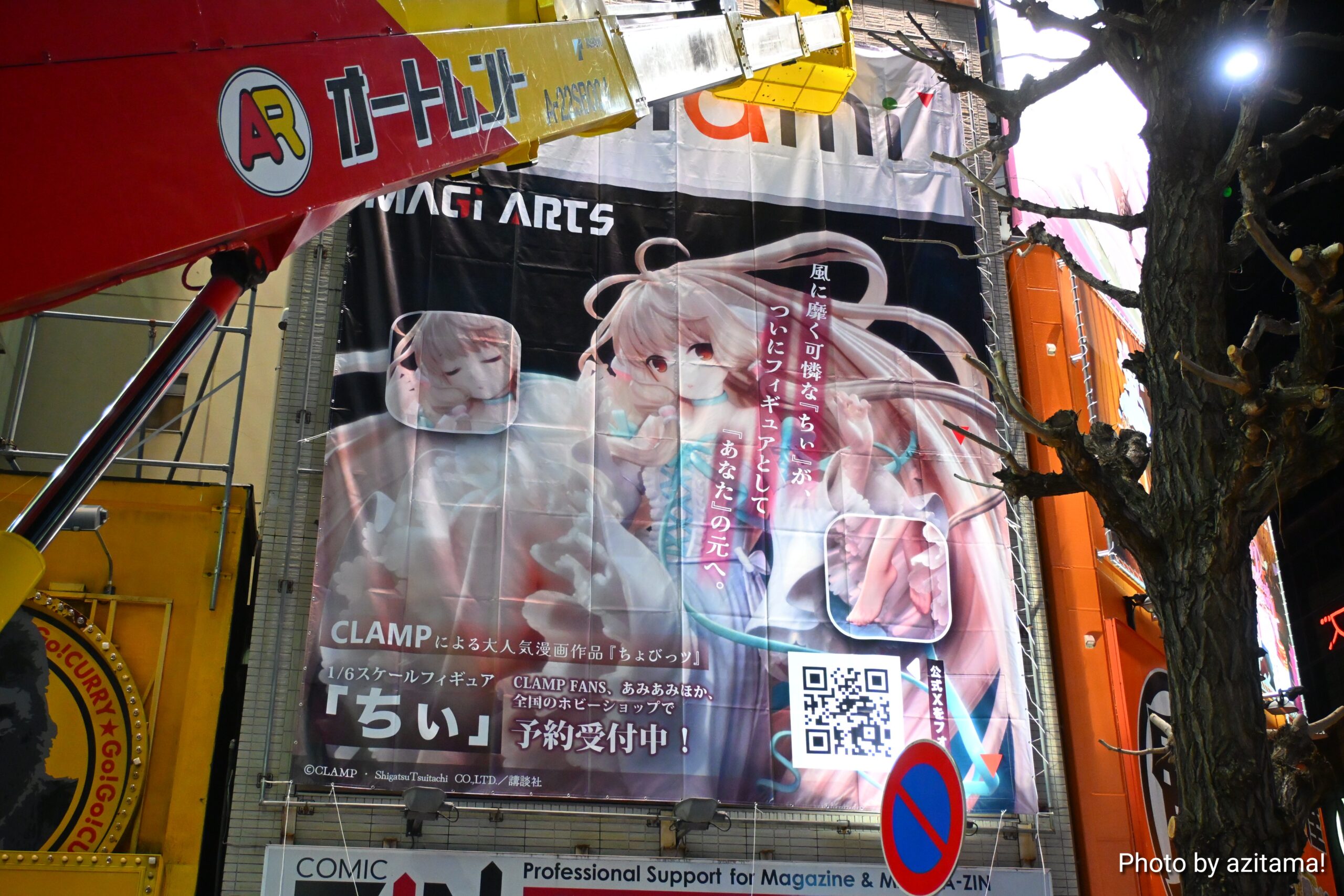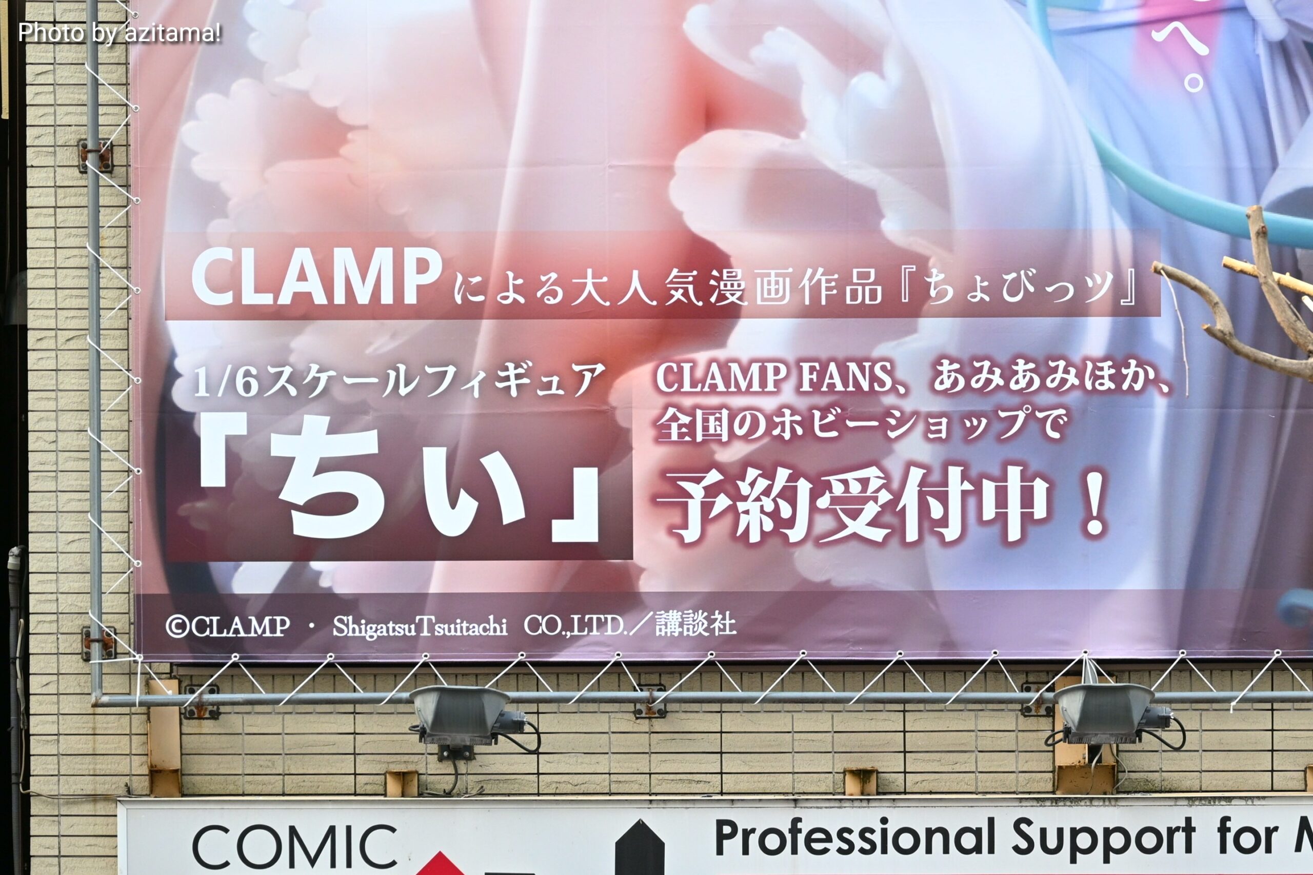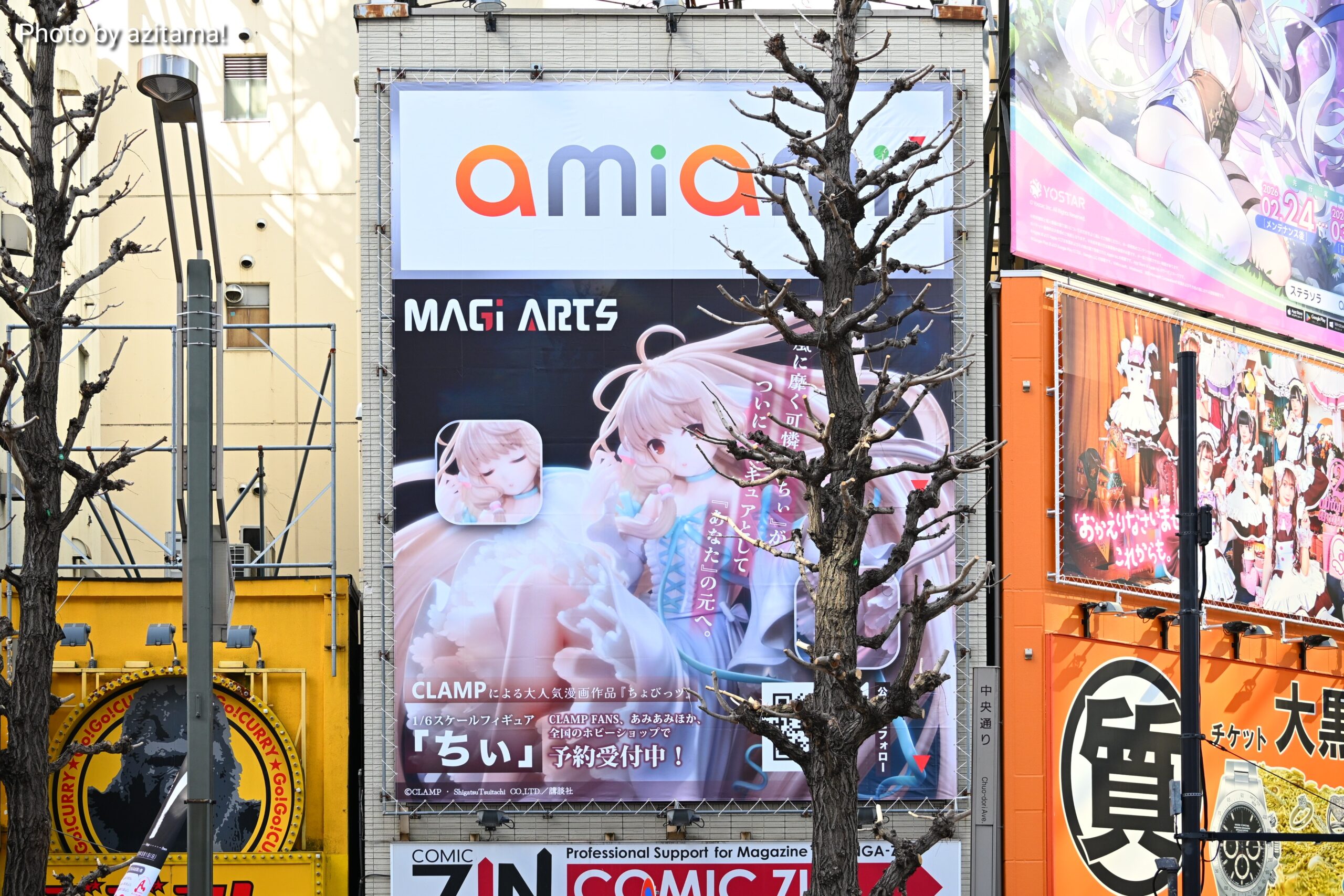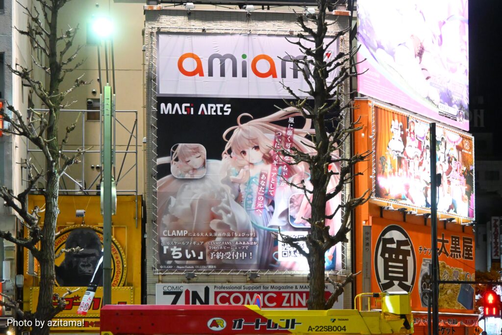秋葉原中央通り、神田明神通りとの交差点付近に広告が掲載されている。付近には様々な広告が掲載されているが、広告枠が大きい、そして掲載位置が低いこともあり目立っている。