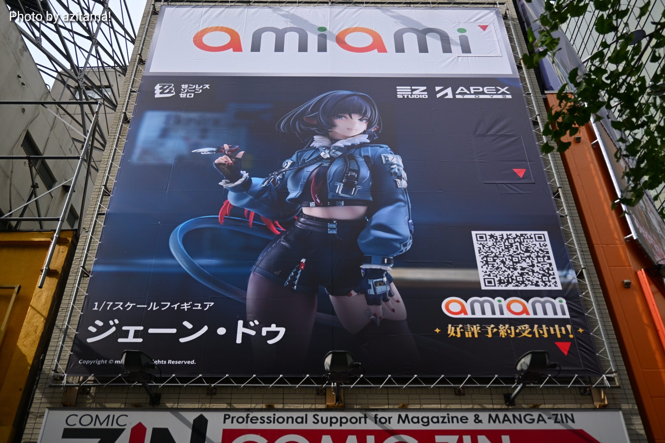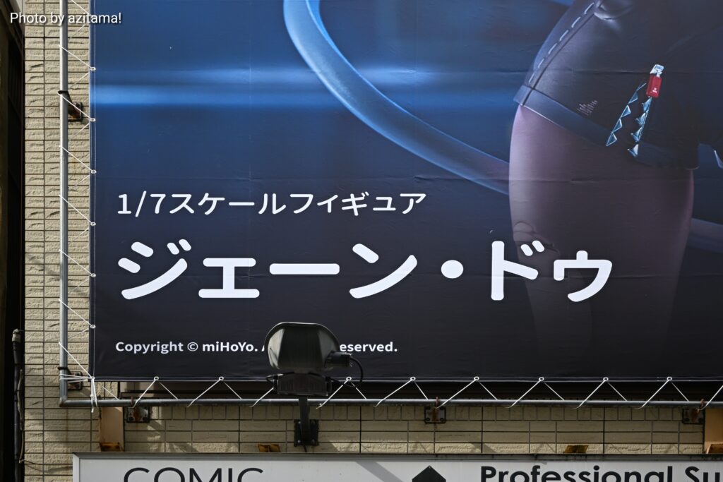 秋葉原中央通り、COMICZIN上部の壁面広告が一部更新されて、『ゼンゼロ』ジェーン・ドゥ 1/7スケールフィギュアの広告が新たに掲載されている。