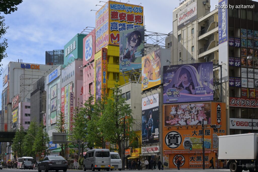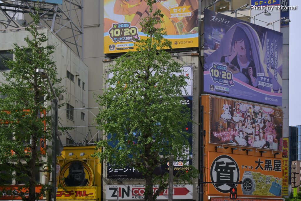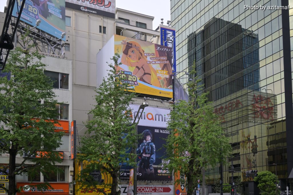 秋葉原中央通り、COMICZIN上部の広告枠に掲載。秋葉原駅近く、交差点付近で人通りの多い一角。