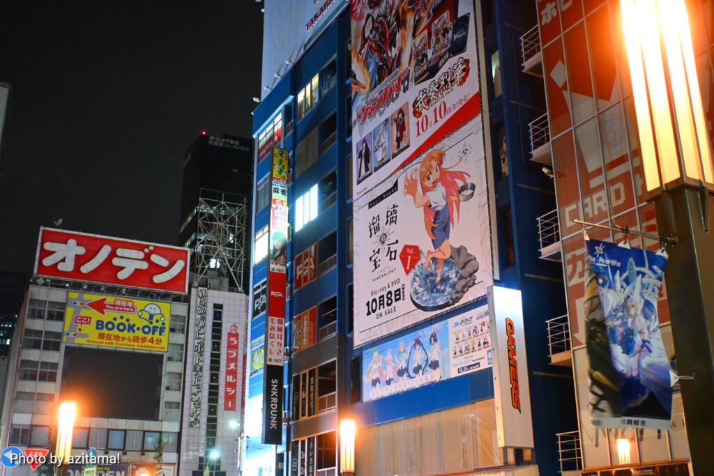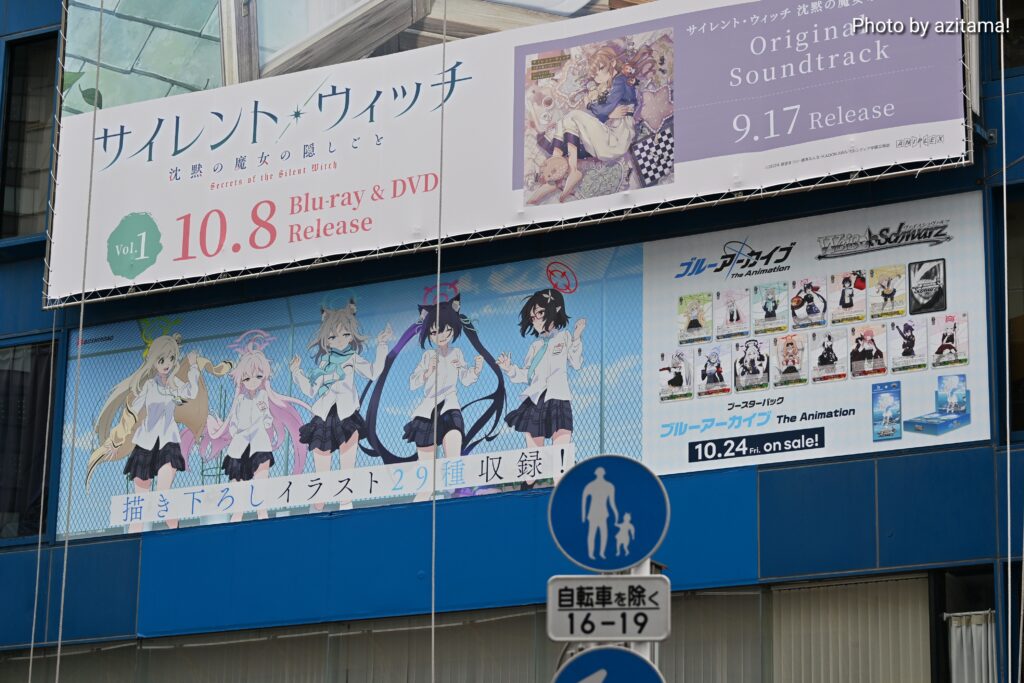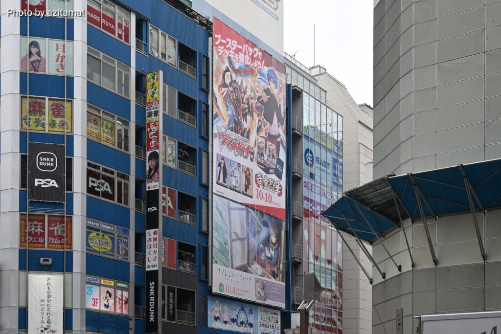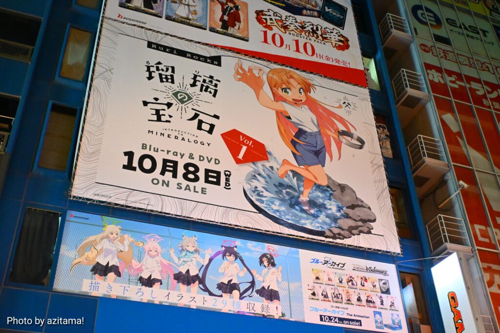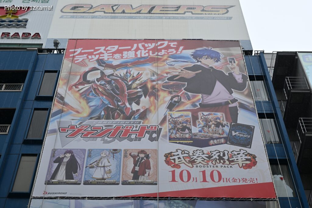 AKIHABARAゲーマーズ本店上部の広告が10月1日、10月6日に更新されて、ヴァンガード『武装烈華』アニメ『瑠璃の宝石』WS『ブルーアーカイブ The Animation』の広告が新たに掲載されている。