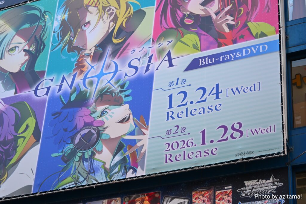 今回はTVアニメ『グノーシア』の広告で、広告ではBlu-ray&DVDの発売を告知。この手の広告では珍しく、第1巻のほか、第2巻の告知もされていた。