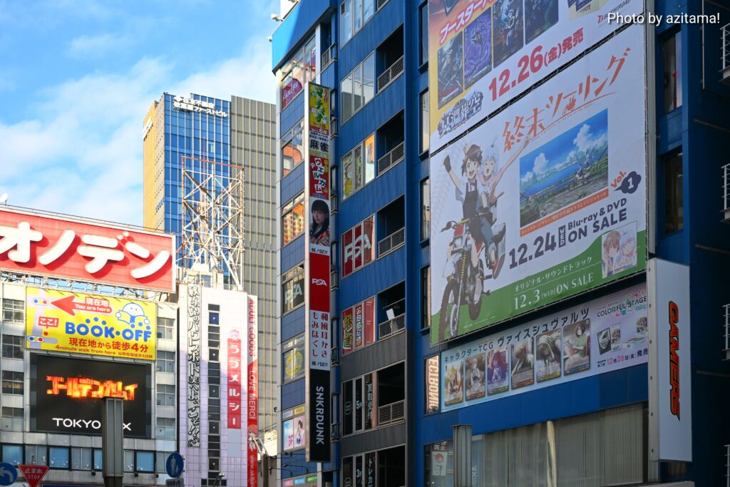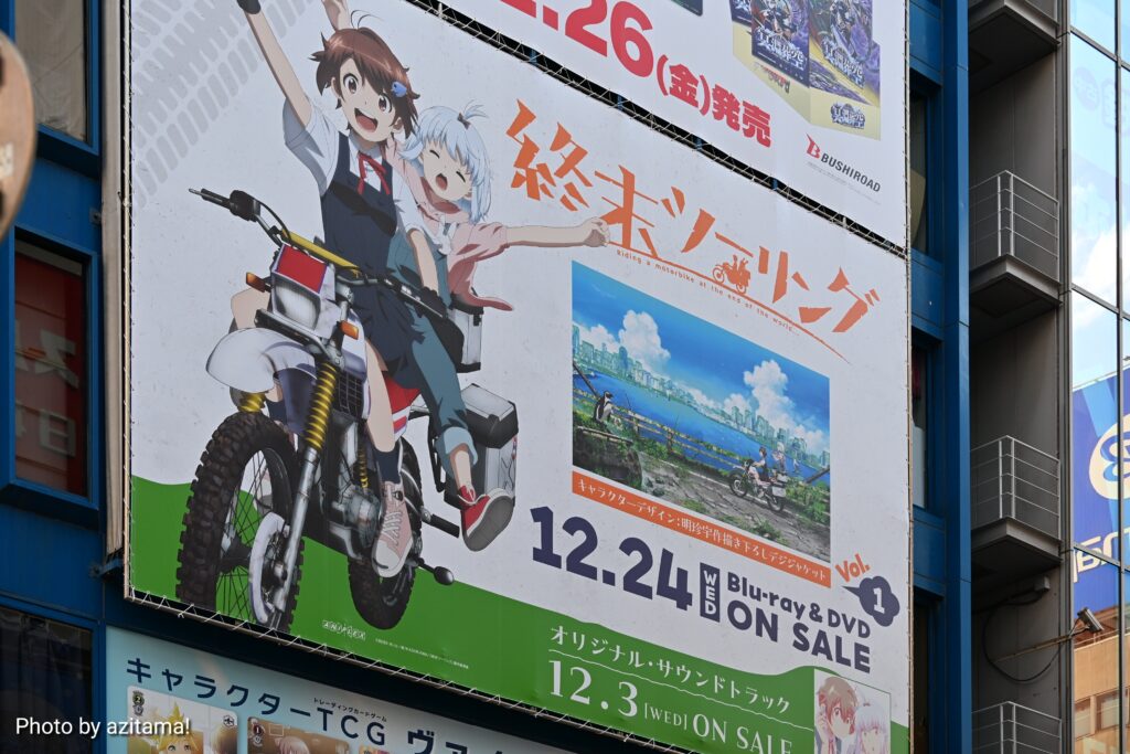 AKIHABARAゲーマーズ本店上部の広告が一部更新されて、TVアニメ『終末ツーリング』の広告が新たに掲載された。