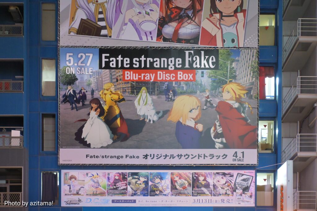 今回は『Fate/strange Fake』広告で、2026年1月よりTVアニメが放送されている作品。広告ではBlu-ray Disc Box/オリジナルサウンドトラックの発売を告知していた。Blu-ray Disc Boxは5月27日、オリジナルサウンドトラックは4月1日に発売予定。
