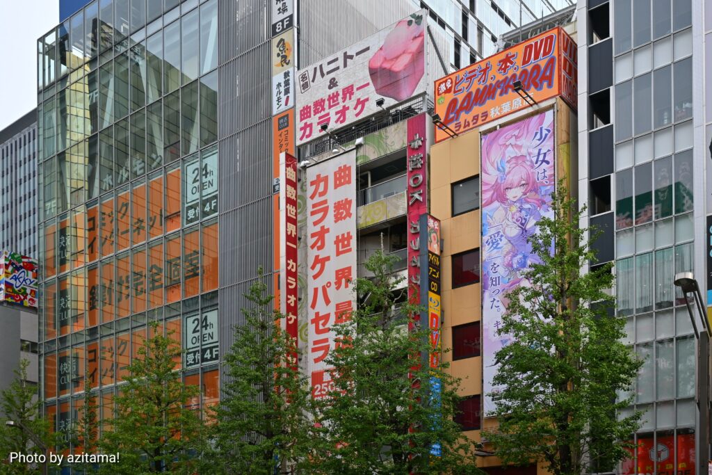 秋葉原中央通り、ラムタラ秋葉原店にて広告が掲載。秋葉原駅近くで、日中などは人通りが多いエリア。