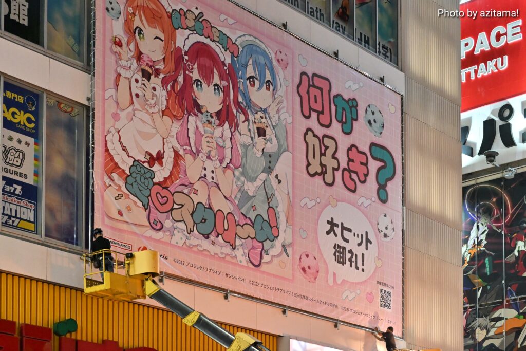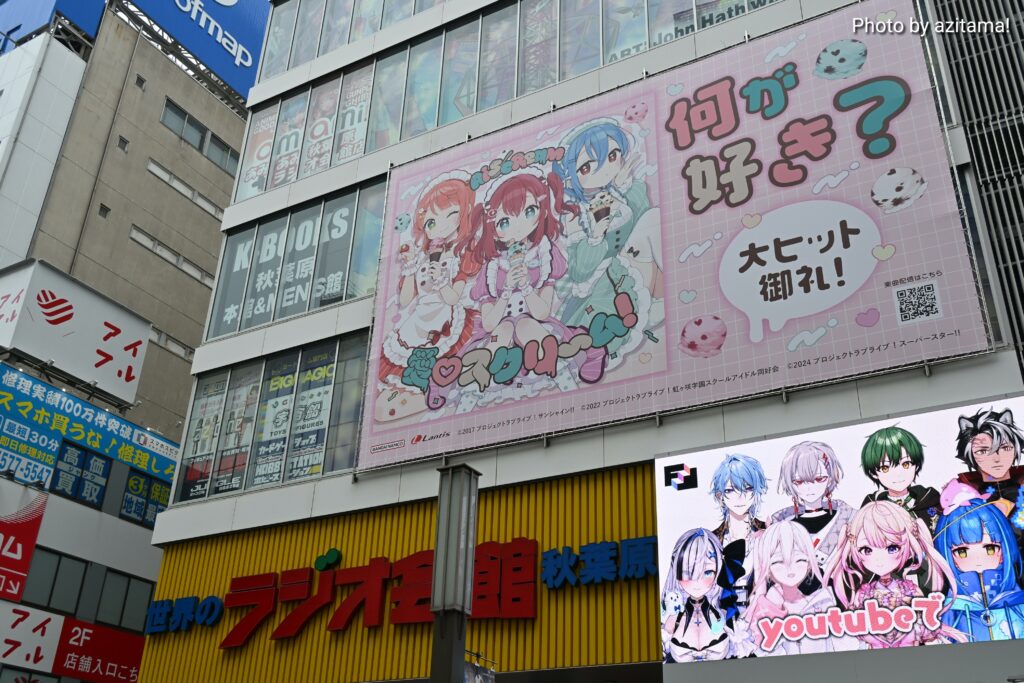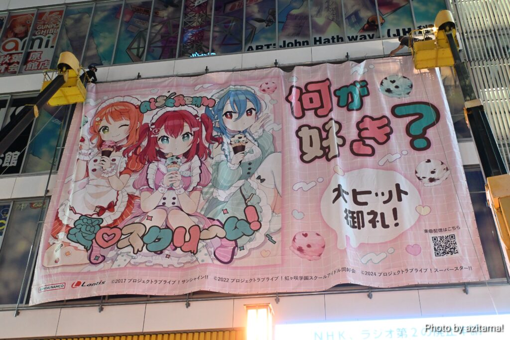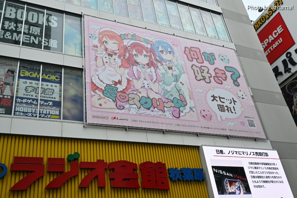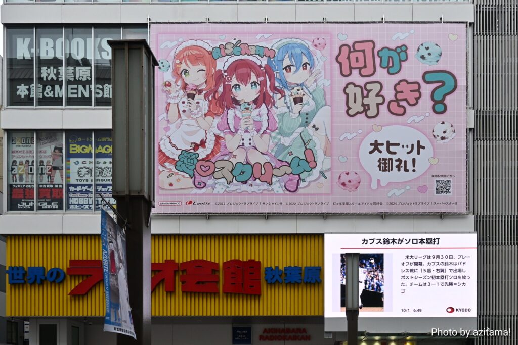 秋葉原ラジオ会館上部の広告枠が1か月ぶりに更新されて、AiScReam『愛♡スクリ〜ム!』大ヒット御礼!広告が掲載されている。