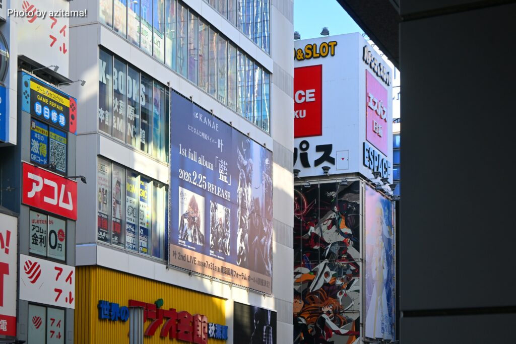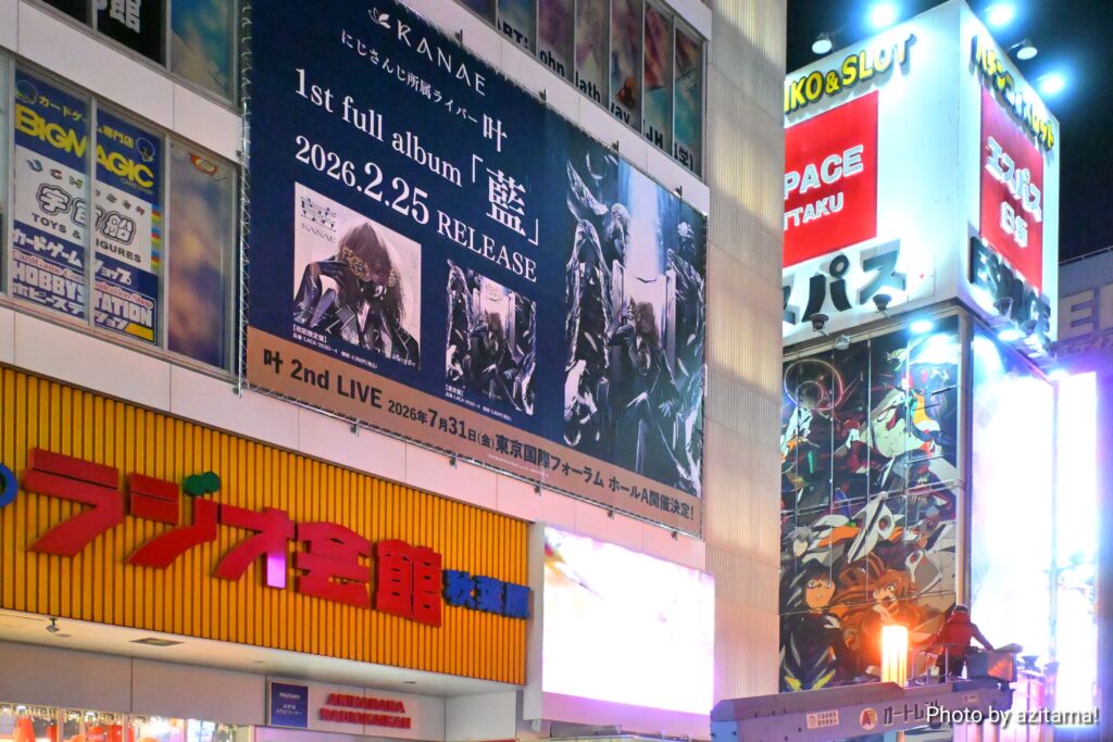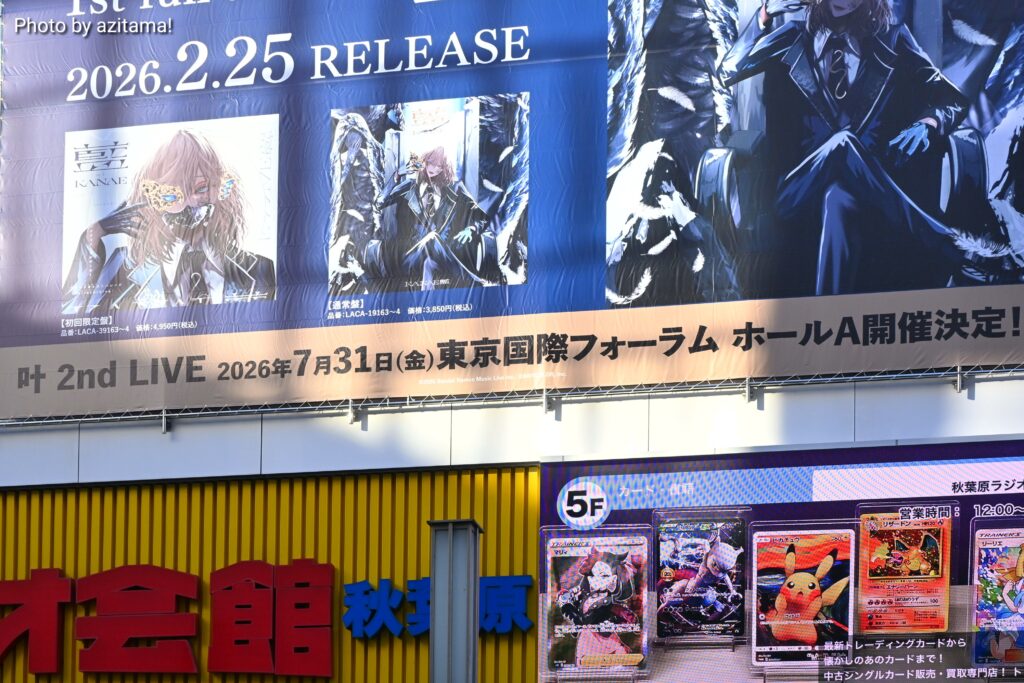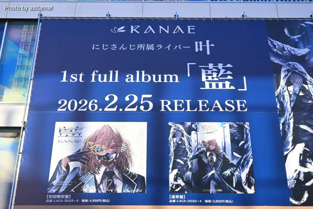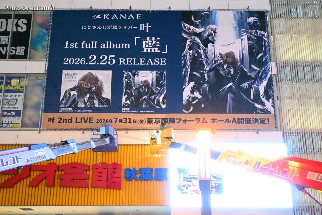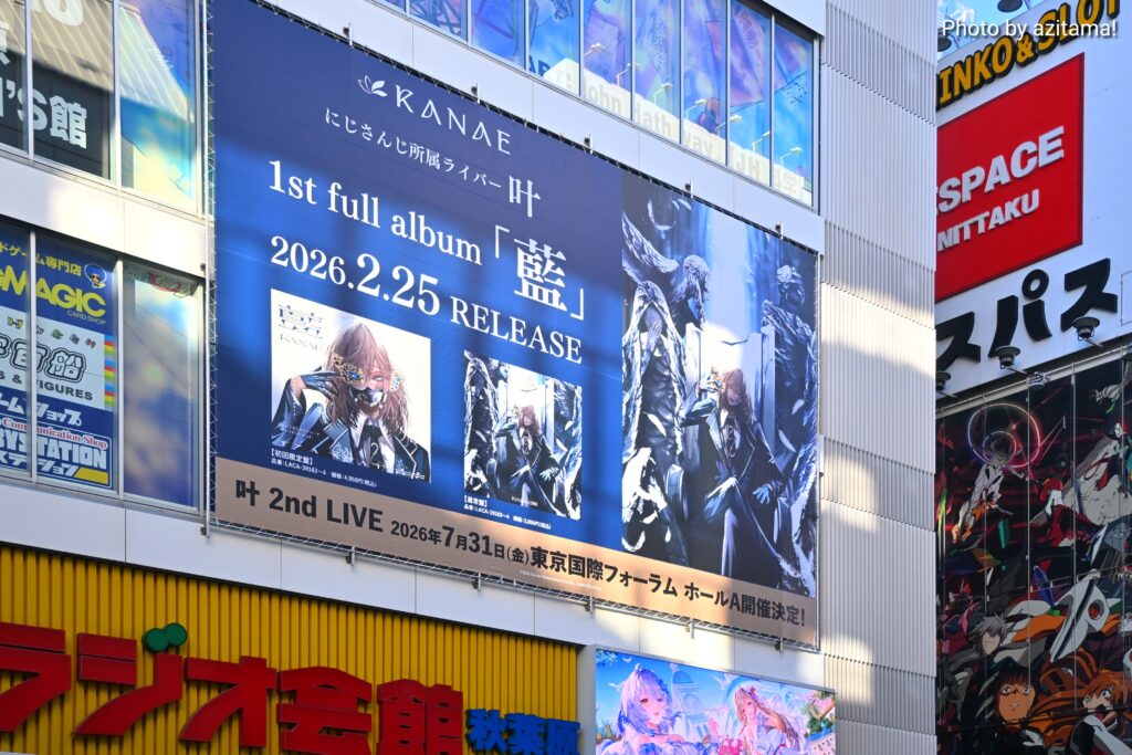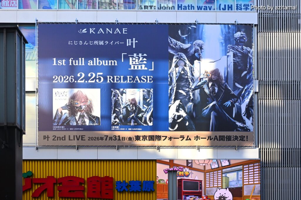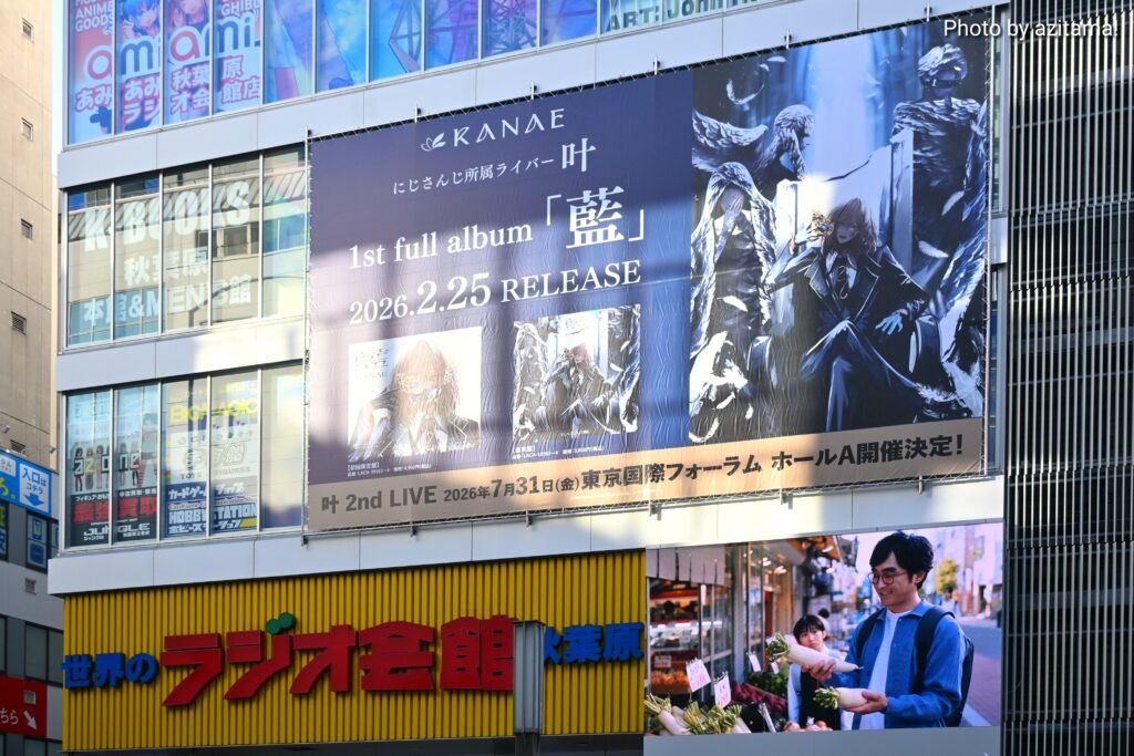 秋葉原ラジオ会館の広告が1月末に更新。にじさんじ所属ライバー『叶』1st full album 『藍』の広告が掲載されている。
