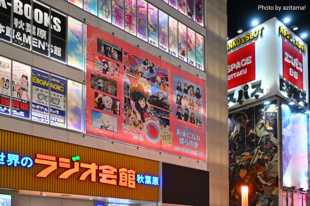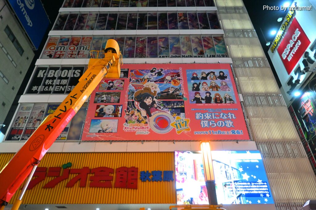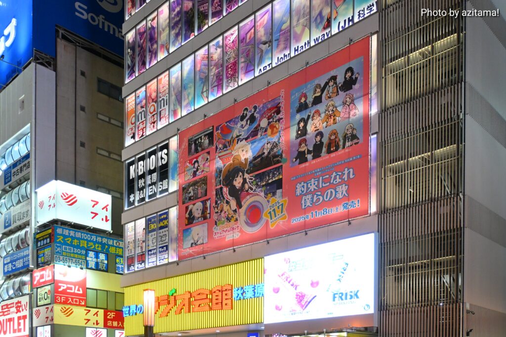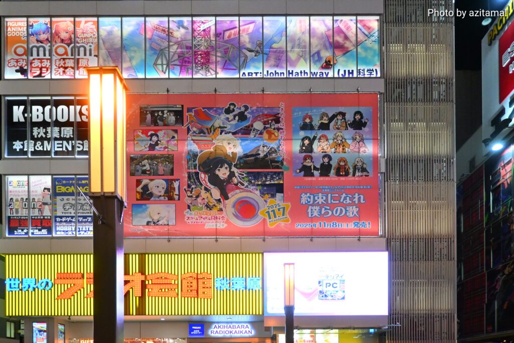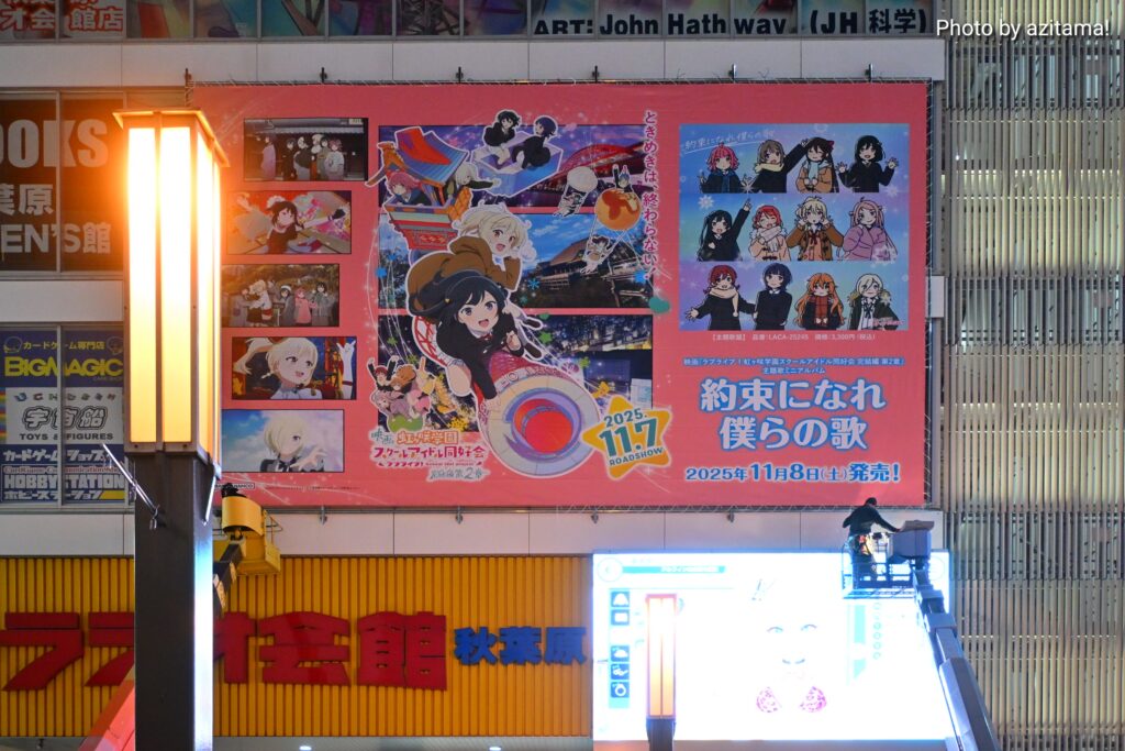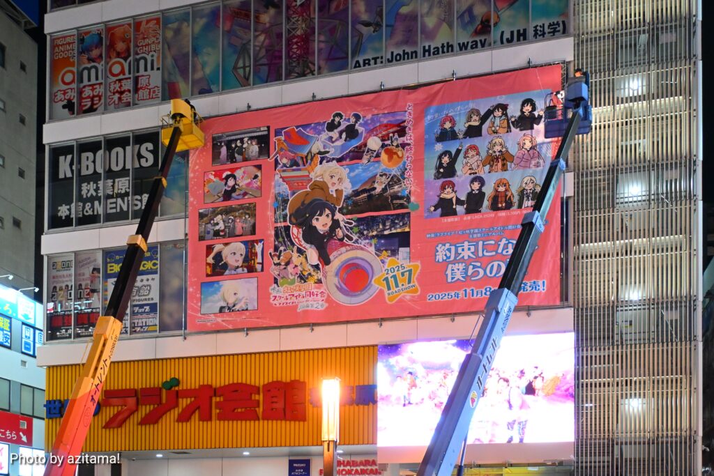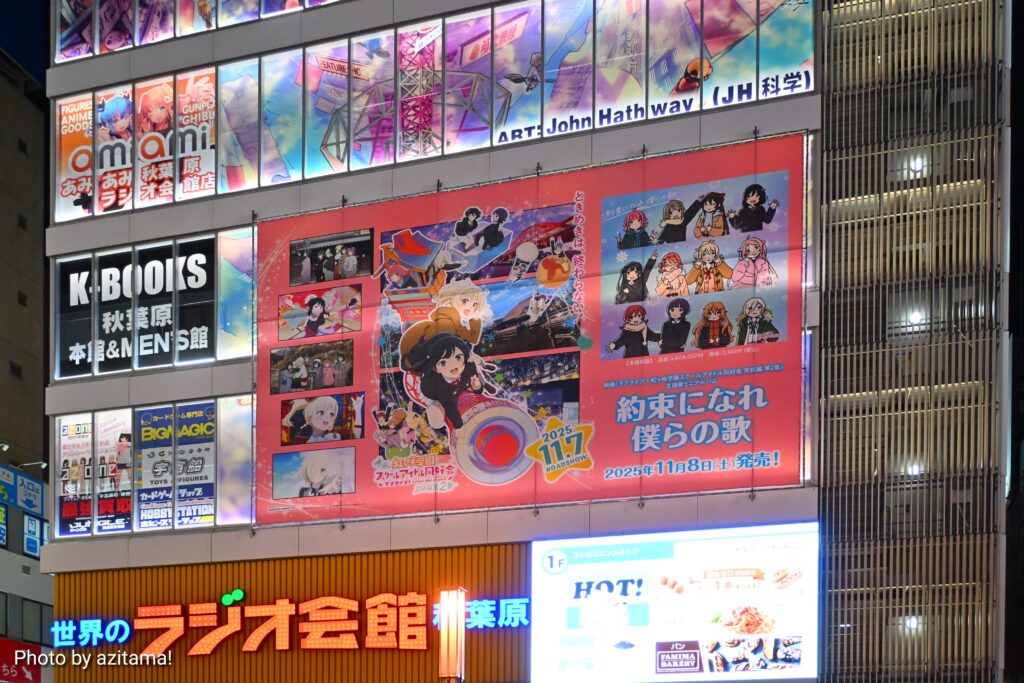 ここ最近、秋葉原ラジオ会館上部では『ラブライブ!』シリーズの広告が多く掲載されている。