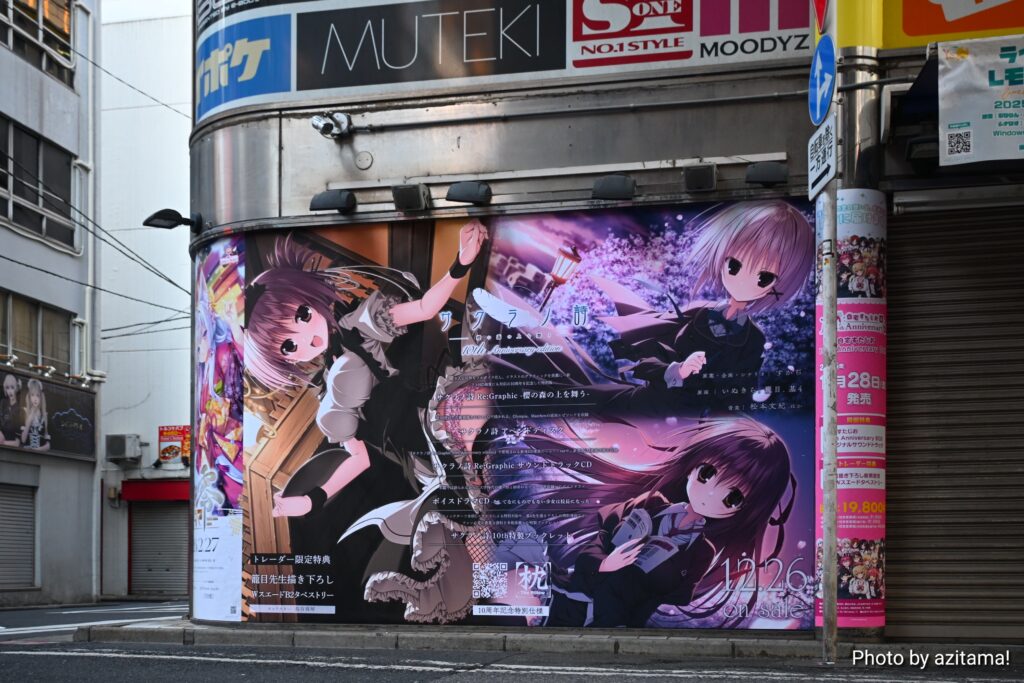 トレーダー秋葉原2号店の壁面広告が一部更新。ゲーム『サクラノ詩 -櫻の森の上を舞う- 10th Anniversary edition』の広告が新たに掲載されている。
